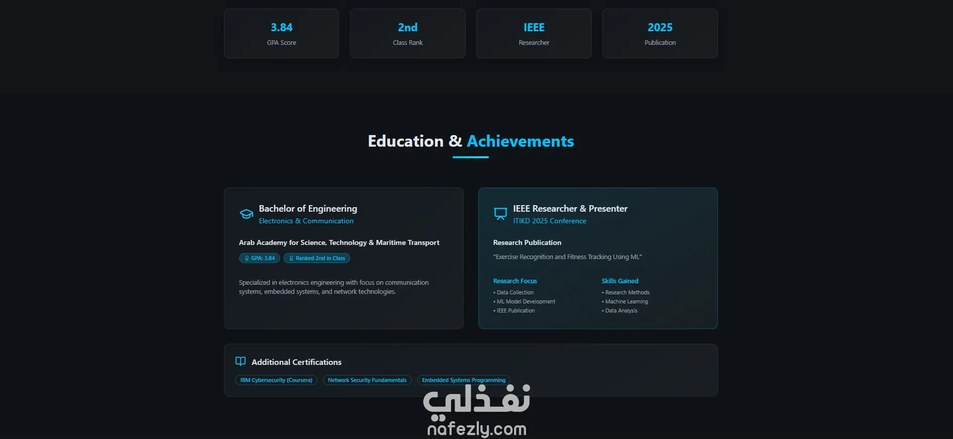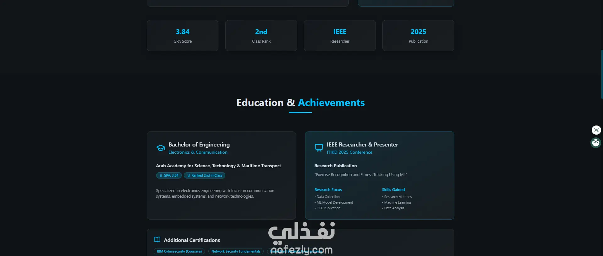بورتفوليو شخصي احترافي يعرض الخبرات والمشاريع