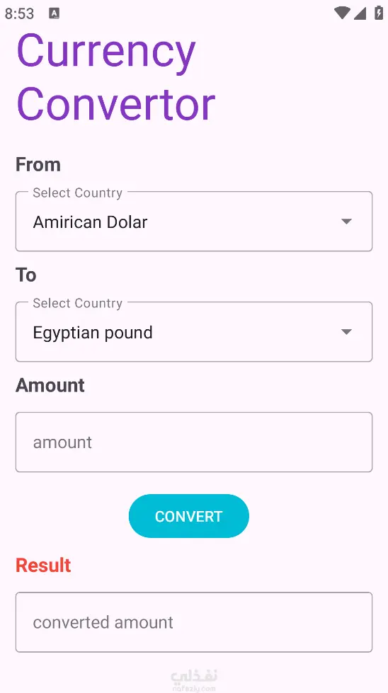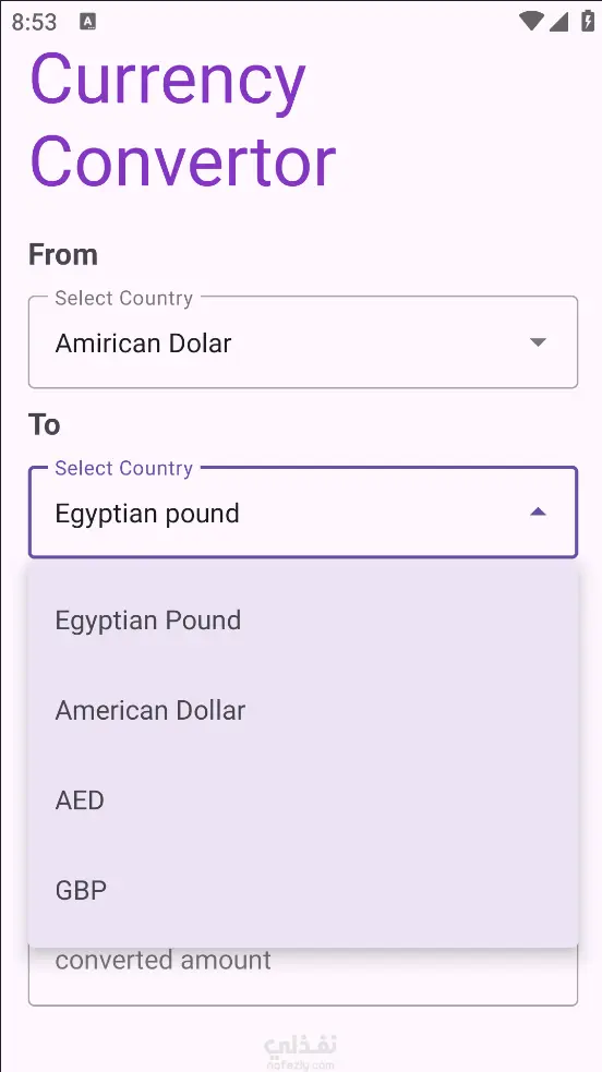 Currency Convertor هو تطبيق يقدم تجربة تحويل عملات سهلة وسريعة للمستخدمين، مع واجهة أنيقة وتصميم تفاعلي يراعي بساطة الاستخدام. يتيح التطبيق اختيار العملة المراد التحويل منها وإليها من خلال قوائم منسدلة، وإدخال المبلغ المطلوب لتحويله، ليتم عرض النتيجة مباشرة وبشكل دقيق.