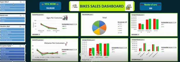 As a part of Digital Egypt Pioneers Initiative - DEPI 🔍 What I Built: ✅ Total Income & Sales KPIs $55.38 million in total bike sales revenue 1,000 total customers analyzed ✅ Region-Based Filtering View and compare sales from Europe, North America, and the Pacific ✅ Customer Profile Filters Marital Status, Education Level, and Occupation Category filters to explore specific segments See how these demographics impact purchasing behavior ✅ Visual Analysis Sections 📌 Age Per Customer Age groups (Adolescent, Middle Age, Old) visualized with income breakdown Purchased vs Not Purchased comparison 📌 Distance Per Customer Analyzed how far customers are willing to travel to buy a bike Sales trends grouped by distance ranges (0–1 mile, 1–5 miles, etc.) 📌 Average Income by Segment Detailed income comparison by Age Group, Region, and Occupation Highlighting key income contributors and underserved segments 📌 Pie Chart Summary Quick visual breakdown of overall income by customer group All visuals are dynamic. 🛠️ Tools Used: Excel (with pivot charts & slicers) 💡 Focus Areas: Data Visualization | Customer Behavior | Sales Intelligence | Dashboard Design