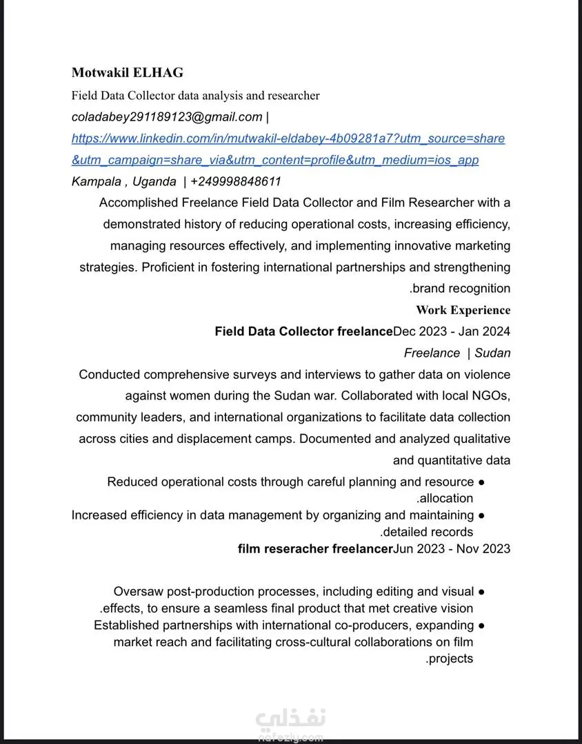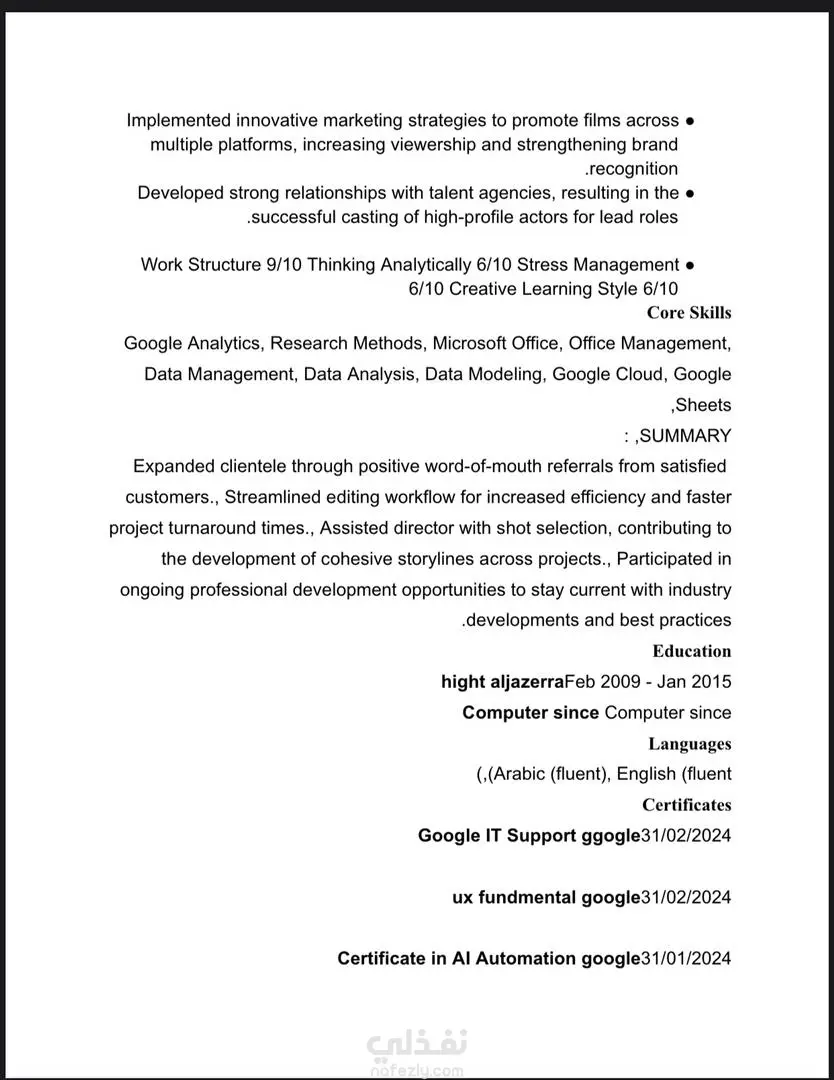 قمت بتصميم سيرة ذاتية احترافية متوافقة مع نظام ATS يمكنك الاطلاع عليها ادناه