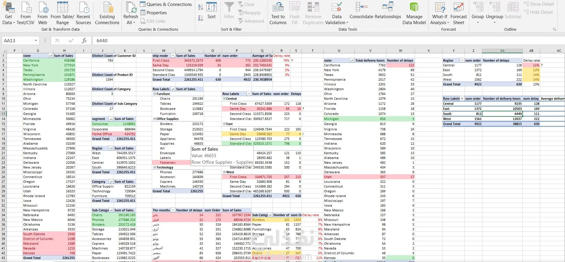 المشروع عبارة عن لوحة معلومات تحليلية تفاعلية تهدف إلى تحليل أداء المبيعات في متجر افتراضي (SuperStore) عبر فترات زمنية مختلفة. تعرض اللوحة مؤشرات رئيسية مثل: إجمالي المبيعات: 2,261,255 عدد الطلبات: 4,922 عدد العملاء: 793 عدد المنتجات: 1,594 كما توضح الرسوم البيانية توزيع المبيعات حسب المنطقة (Region)، الفئة الفرعية (Sub-Category)، ونوع الشحن (Ship Mode)، بالإضافة إلى تحليل تطور المبيعات عبر الزمن (Sales Over Time). يُظهر التحليل أن أعلى المبيعات كانت في المنطقة الغربية (West)، وأن أغلب الطلبات تم شحنها في نظام First Class. تم تنفيذ المشروع باستخدام Excel مع أدوات مثل Pivot Tables، Charts، وSlicers لعرض البيانات بشكل تفاعلي وواضح يدعم اتخاذ القرار.