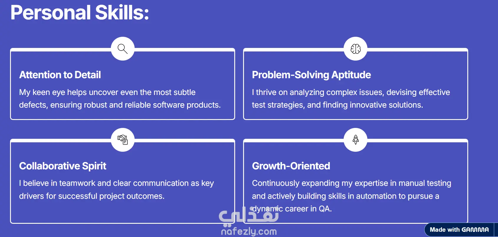 قمتُ بتنظيم وترتيب المشاريع في أقسام واضحة ومنسقة. كتبت وصفًا احترافيًا لكل عمل يوضح الهدف والمهام والأدوات المستخدمة والنتيجة النهائية. صممت بورتفوليو بصيغة PDF بتنسيق عصري ومناسب للمجال المهني للعميل. قمتُ بتحسين اللغة والأسلوب التسويقي للنصوص لجعلها أكثر جاذبية واحترافية. أضفت قسمًا مخصصًا للمهارات والمعلومات الشخصية وطرق التواصل بشكل منظم وسهل القراءة.