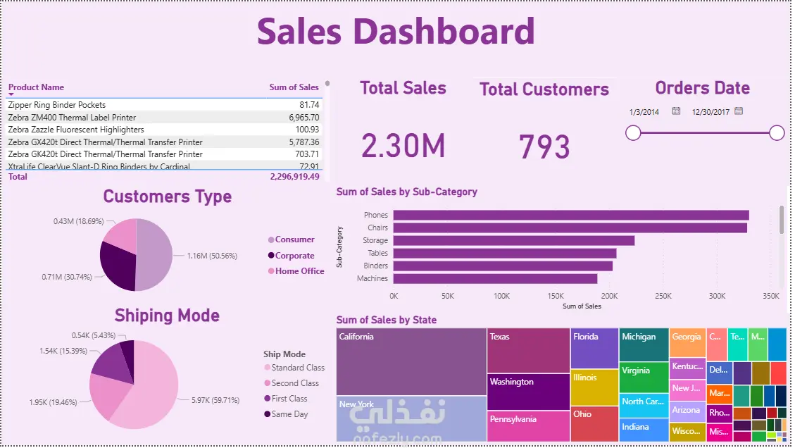 لوحة تحكم للمبيعات (sales dashboard) لقاعدة بيانات تسمى superstore بإستخدام برنامج power bi