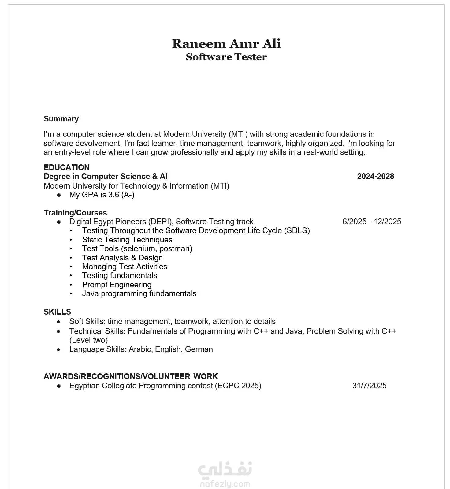 تصميم سيرة ذاتية متوافقة مع نظام ال ATS لزيادة فرصك في القبول بالعمل لأن معظم الشركات في السوق تستخدم نظام ال ATS سيره ذاتيه احترافيه باللغه العربيه او الانجليزيه صفحه كامله تنسيق PDF جاهز للطباعه A4 التعديل علي السيره الذاتيه بدون اي رسوم