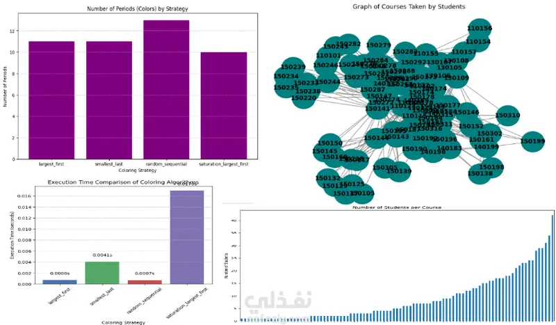 تطبيق خوارزميات الجدولة: استخدمت استراتيجيات التلوين (Graph Coloring Strategies)، مثل:
