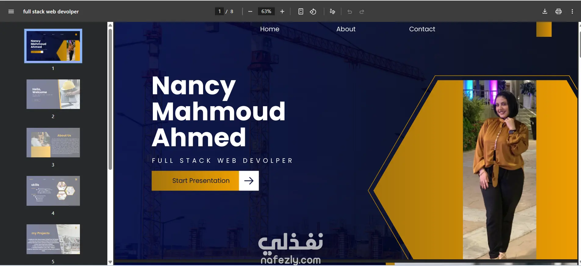 أقدر أقدملك بورتفوليو بتصميم عصري وسهل التصفح ومتجاوب تمامًا مع جميع الأجهزة (كمبيوتر وموبايل)، ويدعم اللغة العربية بالكامل.