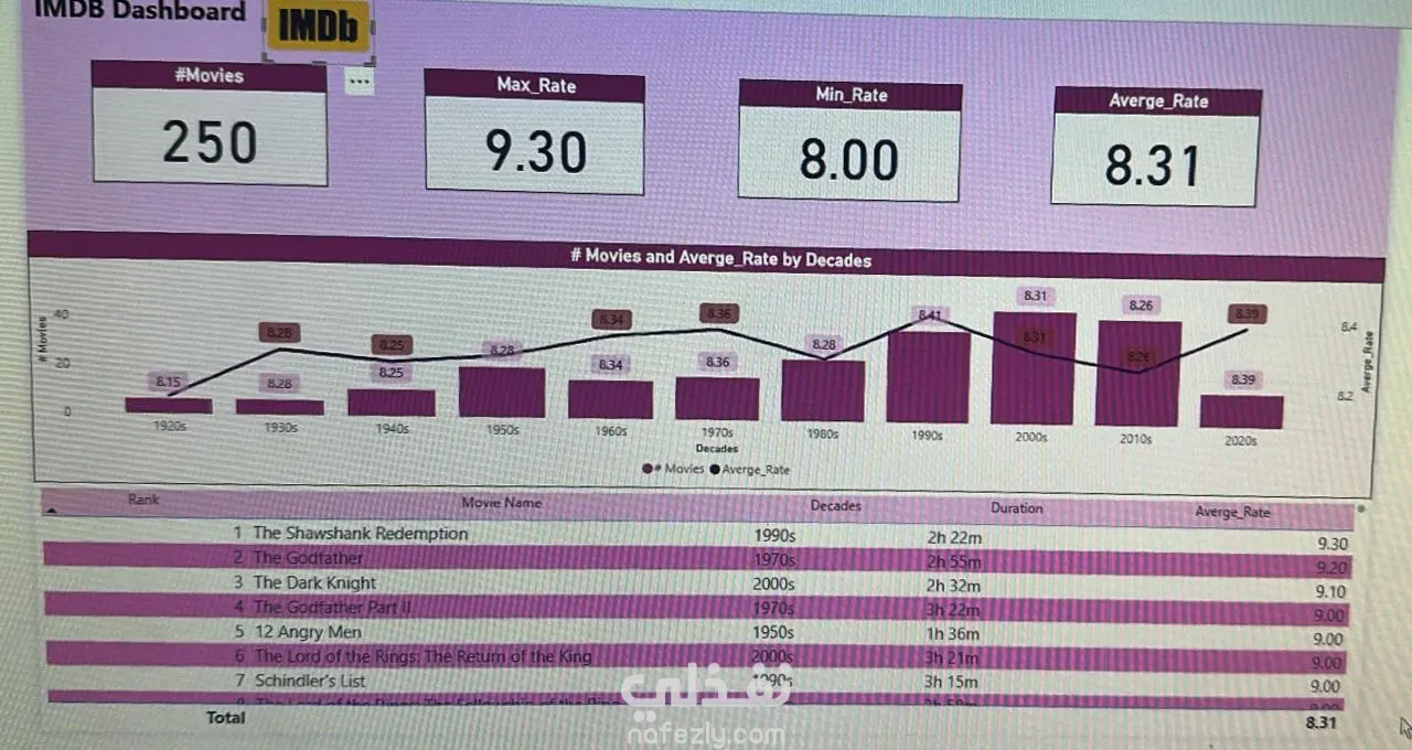 قمت بتصميم Dashboard تفاعلية على Power BI لتحليل بيانات الأفلام الموجودة على موقع IMDb.