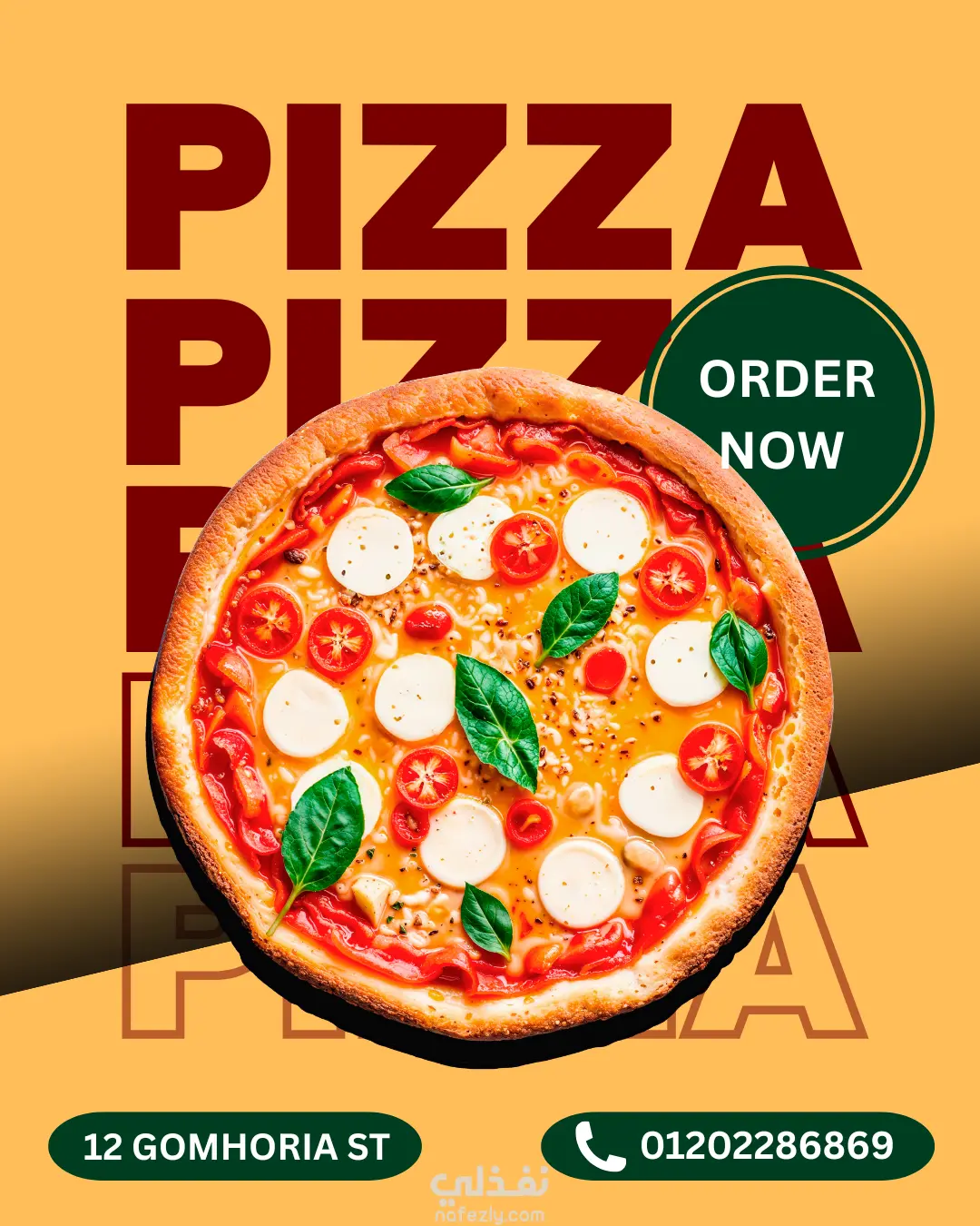 تنسيق احترافي للعناصر (السعر، العنوان، رقم الطلب) لتحقيق توازن بصري يزيد من وضوح الإعلان.