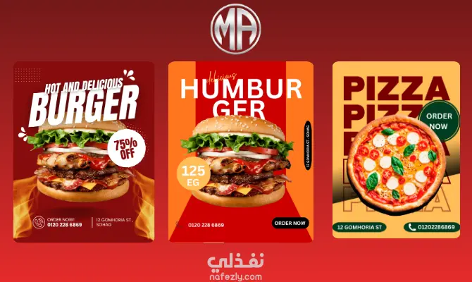 مشروع تصميمات دعائية احترافية لمطعم ، تهدف إلى إبراز المنتج بشكل شهي وجذاب وتحفيز العملاء على الطلب الفوري.