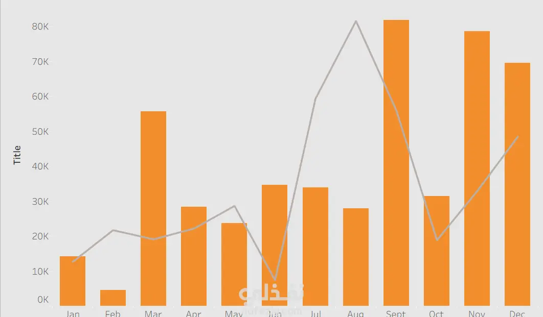 يعرض المبيعات الشهرية من يناير إلى ديسمبر.