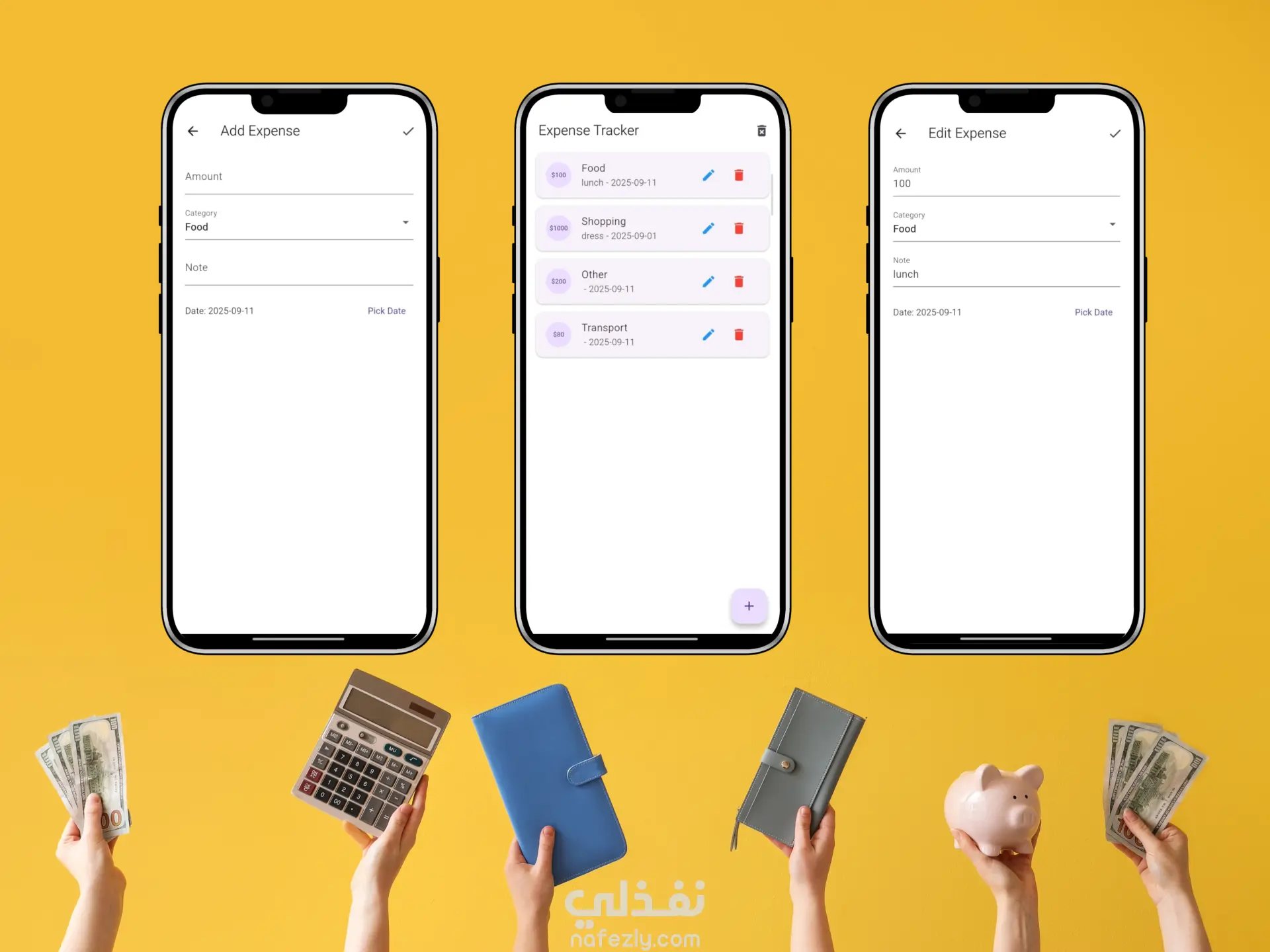 تطبيق جوال مصمم لمساعدة المستخدمين على تتبع نفقاتهم اليومية بطريقة منظمة. يمكن للمستخدمين إضافة مصروف جديد عن طريق إدخال المبلغ، واختيار الفئة (مثل الطعام، المواصلات، أو التسوق)، وإضافة ملاحظات، وتحديد التاريخ. كما يمكنهم تعديل أو حذف المصروفات الموجودة، أو مسح جميع السجلات بضغطة واحدة. هذا التطبيق يجعل من السهل متابعة الإنفاق وإدارة الميزانية الشخصية بفعالية.