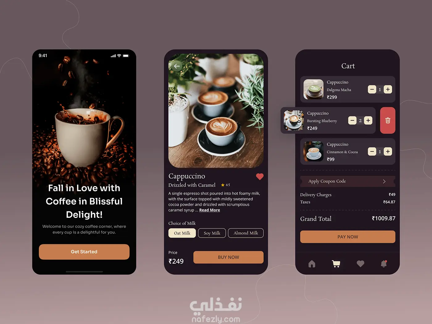 تطبيق Coffee Shop App هو تطبيق عصري تم تصميمه لتوفير تجربة سلسة ومريحة لعشاق القهوة. يتيح للمستخدمين تصفح قائمة المشروبات والأطعمة بسهولة مع عرض صور جذابة ووصف تفصيلي لكل منتج. يمكن للمستخدم طلب القهوة والدفع عبر التطبيق واختيار خيار الاستلام من المتجر أو التوصيل إلى الموقع.