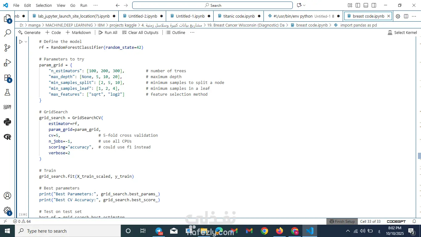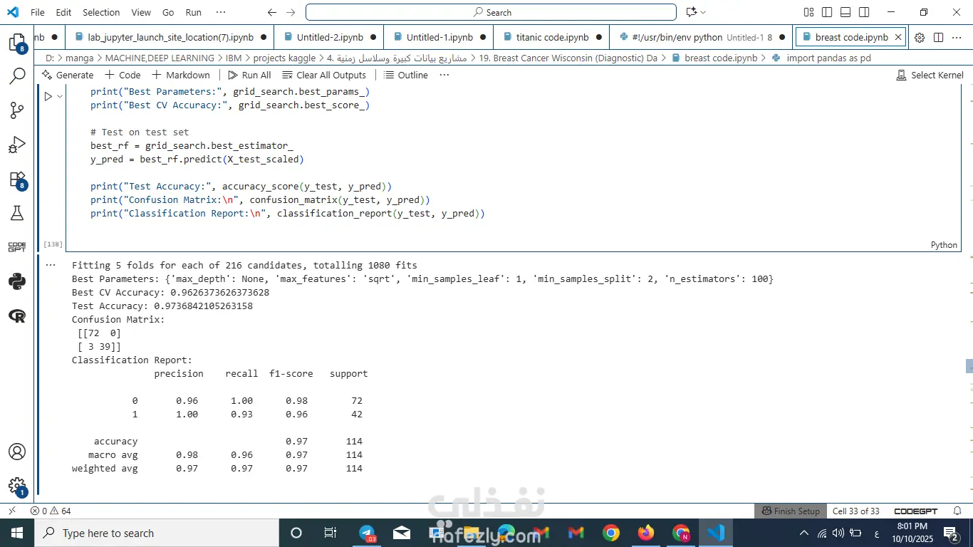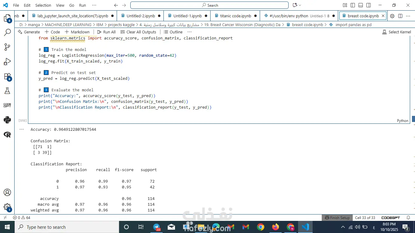 تطوير نموذج تعلم آلي (Gradient Boosting) لتشخيص سرطان الثدي بدقة عالية (Accuracy)
