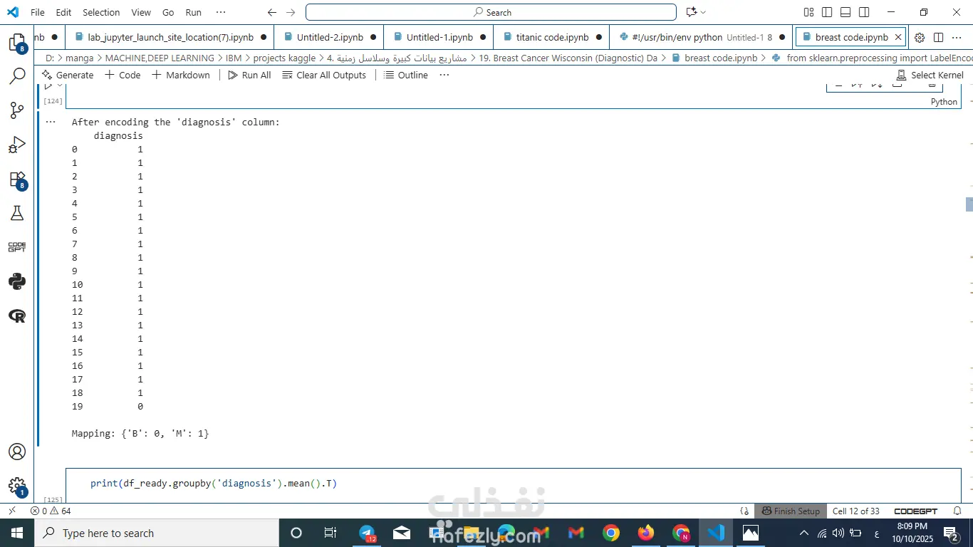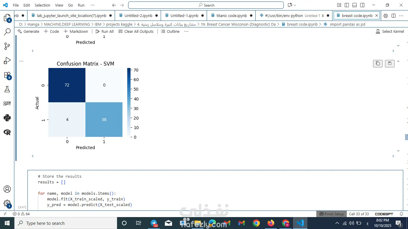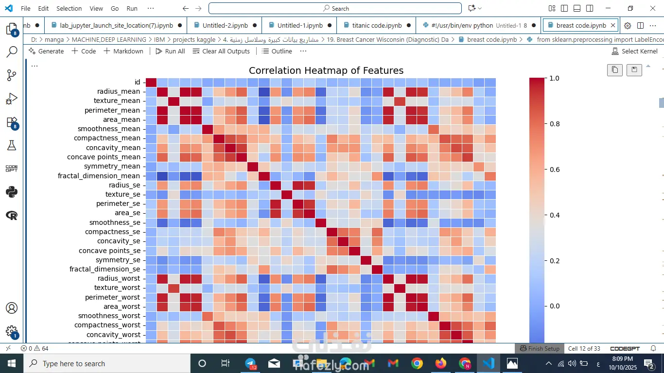 تطوير نموذج تعلم آلي (Gradient Boosting) لتشخيص سرطان الثدي بدقة عالية (Accuracy)
