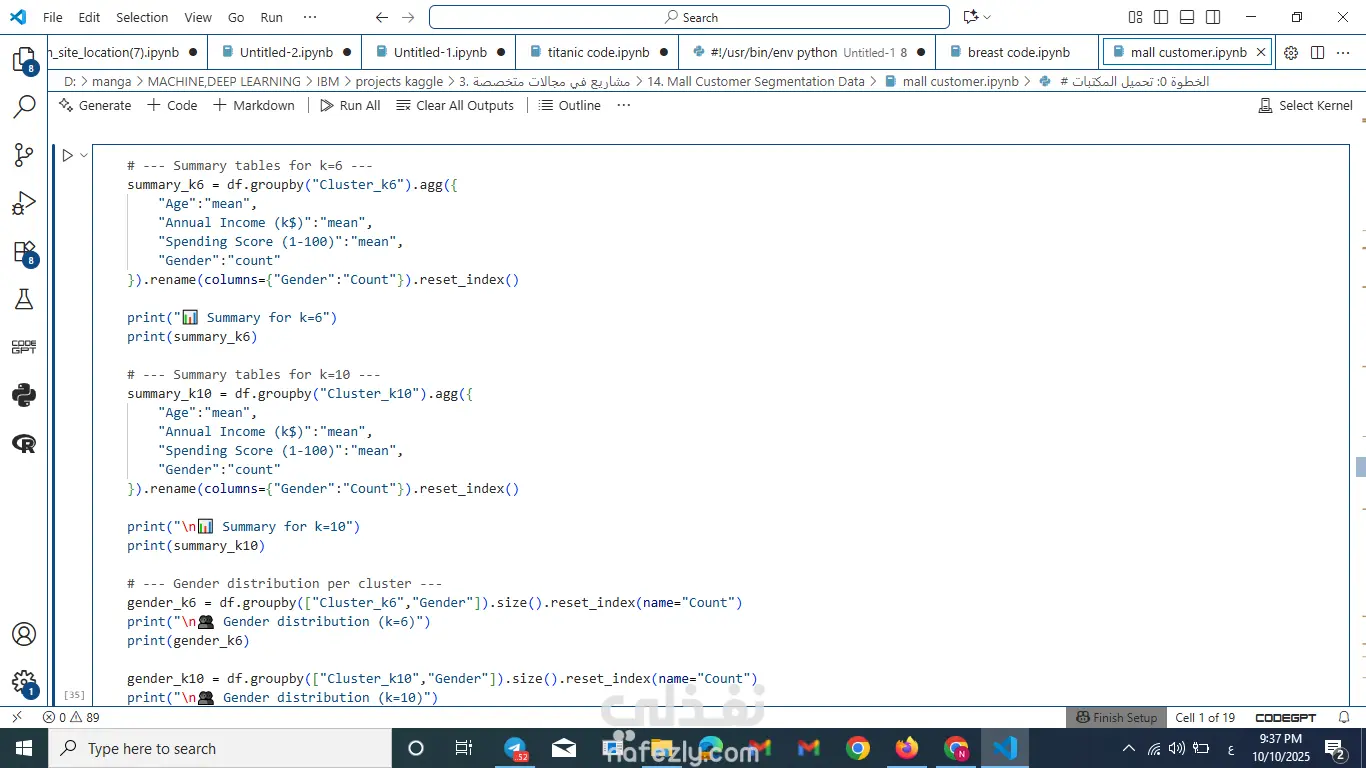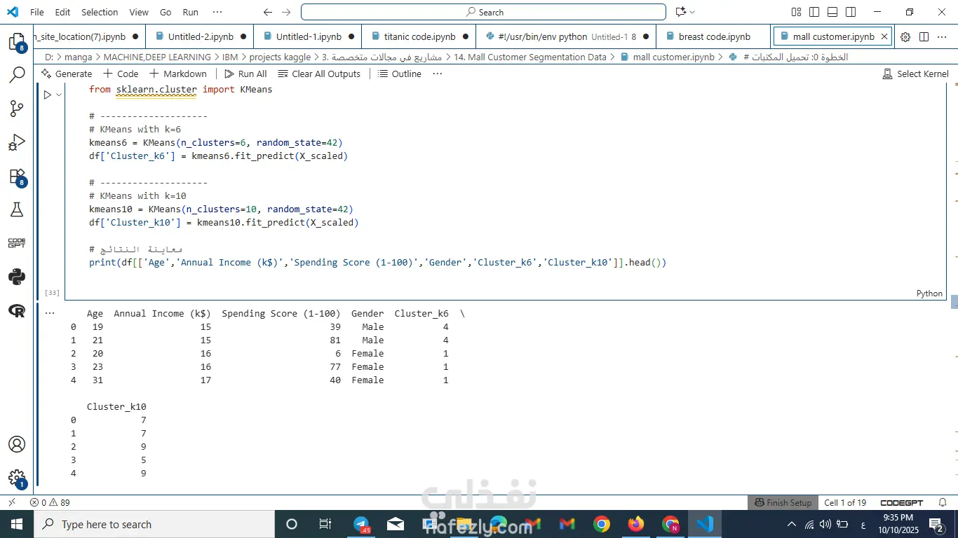 تحليل متقدم لسلوك العملاء وتقسيمهم (Customer Segmentation) باستخدام خوارزمية K-Means Clustering في Python.