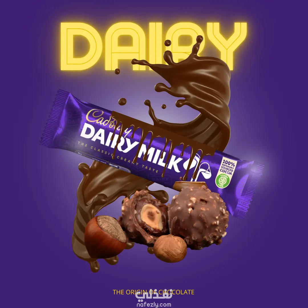 دلّل حواسك مع شوكولاتة دايري ميلك الغنية بطعم الكاكاو الأصيل والبندق المقرمش! لحظة من السعادة في كل قضمة، تجربة لا تُقاوم لعشّاق الشوكولاتة الحقيقية.