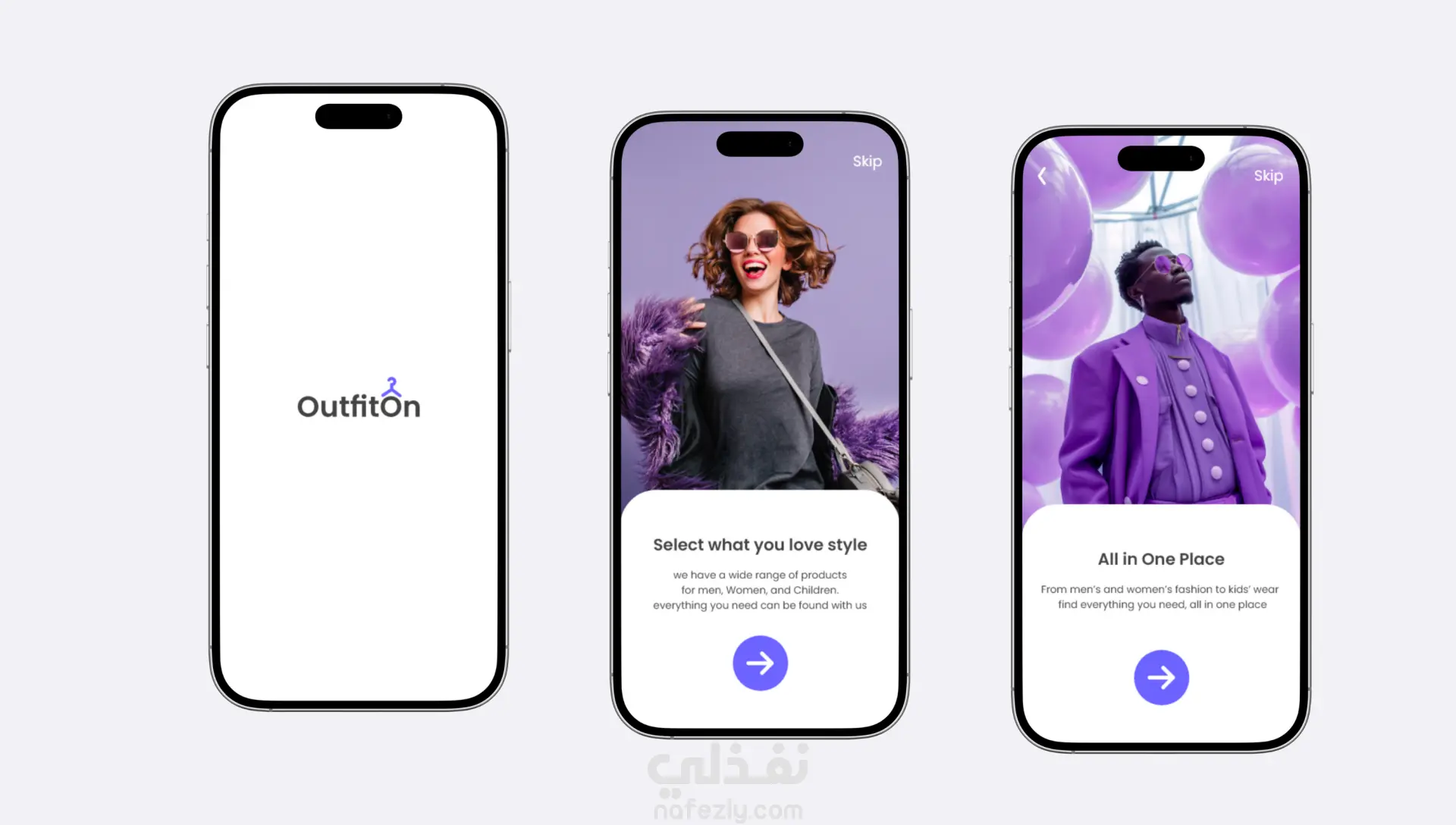 تصميم واجهات وتجربة مستخدم لتطبيق متجر إلكتروني – OutfitOn App