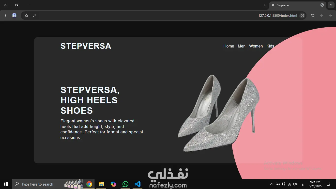 قمت بتصميم وتطوير صفحة هبوط (Landing Page) لمتجر أحذية تحت اسم Stepversa باستخدام HTML وCSS وJavaScript.