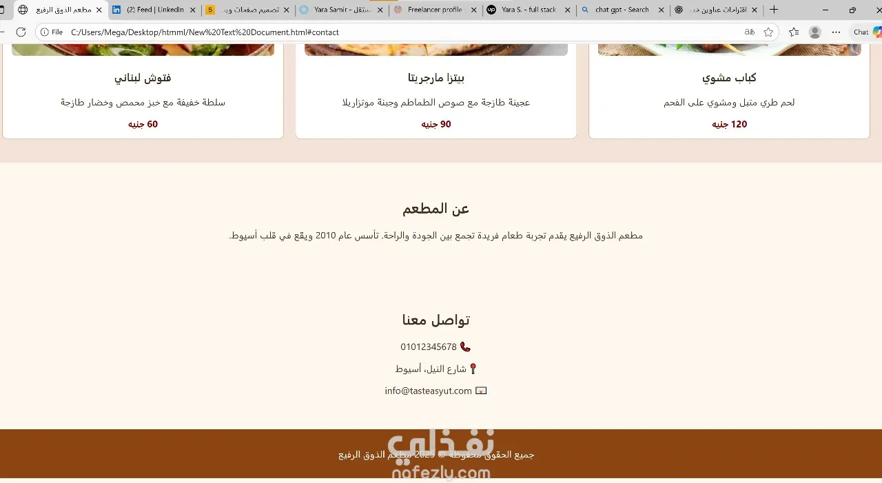أقوم بتصميم موقع إلكتروني مكوّن من 4 صفحات (الرئيسية - عن الموقع - الخدمات - تواصل معنا) باستخدام HTML وCSS فقط. مواصفات العمل: تصميم بسيط واحترافي متجاوب مع الجوال والتابلت قابل للتعديل بسهولة