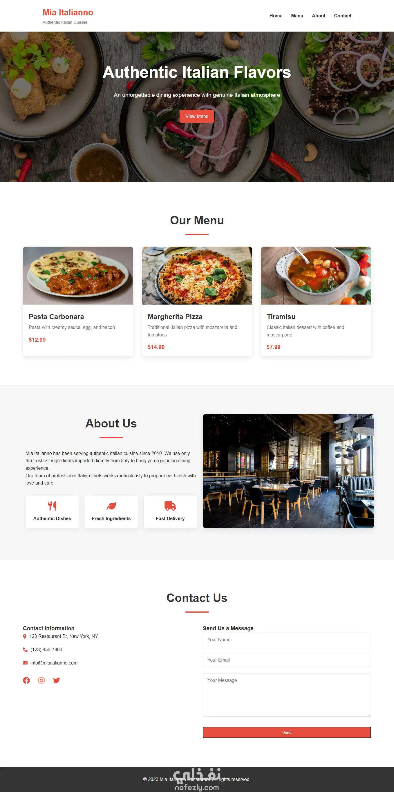 قمت بتصميم وتطوير موقع Mia Italiano، وهو موقع مطعم إيطالي أنيق يركز على إبراز تجربة المستخدم من خلال واجهة عصرية ومتجاوبة.