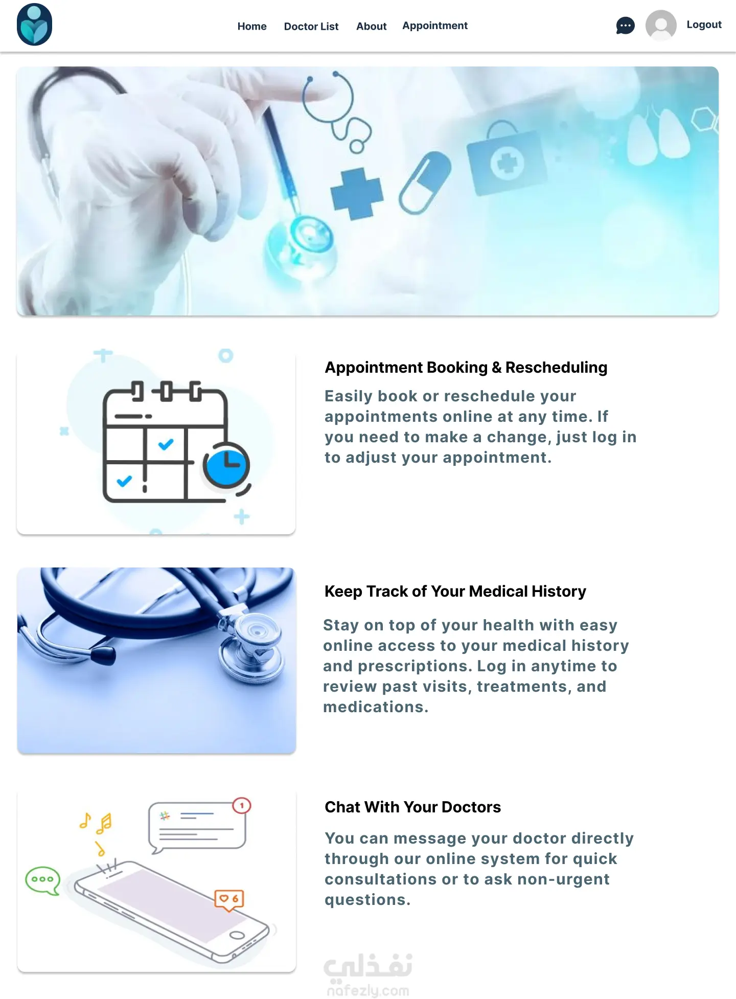 طوّرت تطبيقًا ويب لإدارة العيادات والأطباء، يتيح للمرضى حجز المواعيد والوصول إلى الوصفات الطبية والتواصل المباشر مع الأطباء. كما حسّنت كفاءة المواعيد من خلال تبسيط عمليات الحجز وتحسين التواصل بين المريض والطبيب.