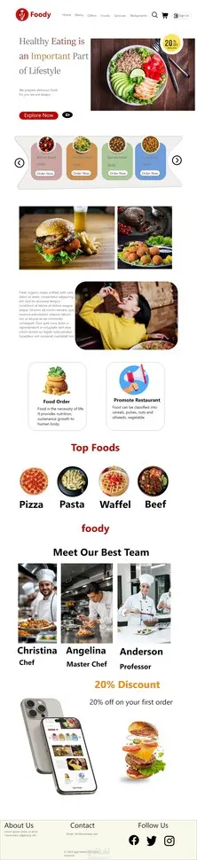 تصميم واجهة مستخدم وتجربة مستخدم (UI/UX) لصفحة هبوط لموقع Foody المتخصص في الأكل الصحي والسلطات.