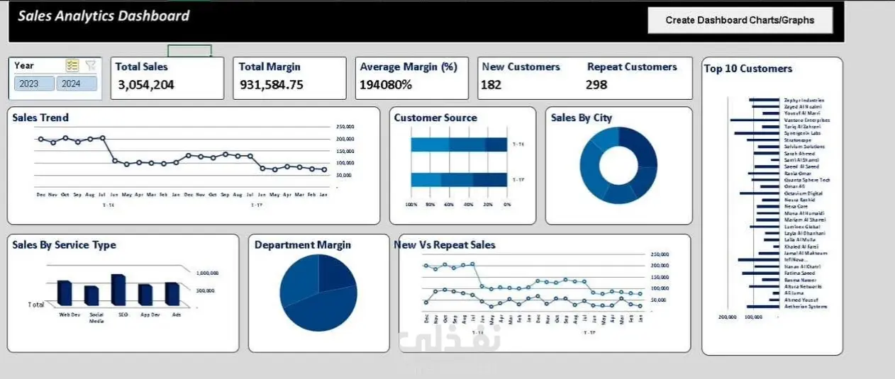 أنا محللة بيانات أساعدك في بناء لوحات تحكم (Dashboards) احترافية لمتابعة وتحليل المبيعات. أستخدم أدوات مثل Excel وSQL وPython لاستخراج البيانات وتنظيفها، ثم أحولها إلى رسوم بيانية ولوحات تفاعلية سهلة الفهم. من خلال هذه اللوحات تقدر تتابع أداء المبيعات، تعرف المنتجات الأكثر ربحية، وتقارن بين الفترات الزمنية المختلفة. هدفي هو تزويدك برؤية واضحة تساعدك على اتخاذ قرارات أسرع وأدق لتحسين استراتيجيات المبيعات وزيادة الأرباح