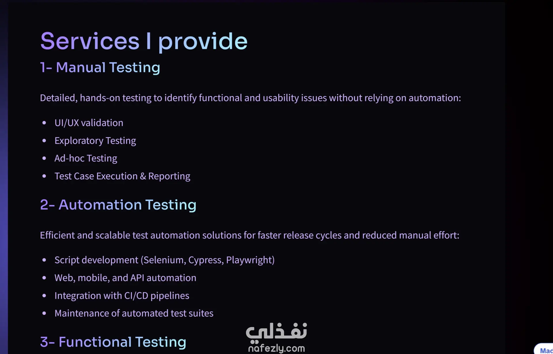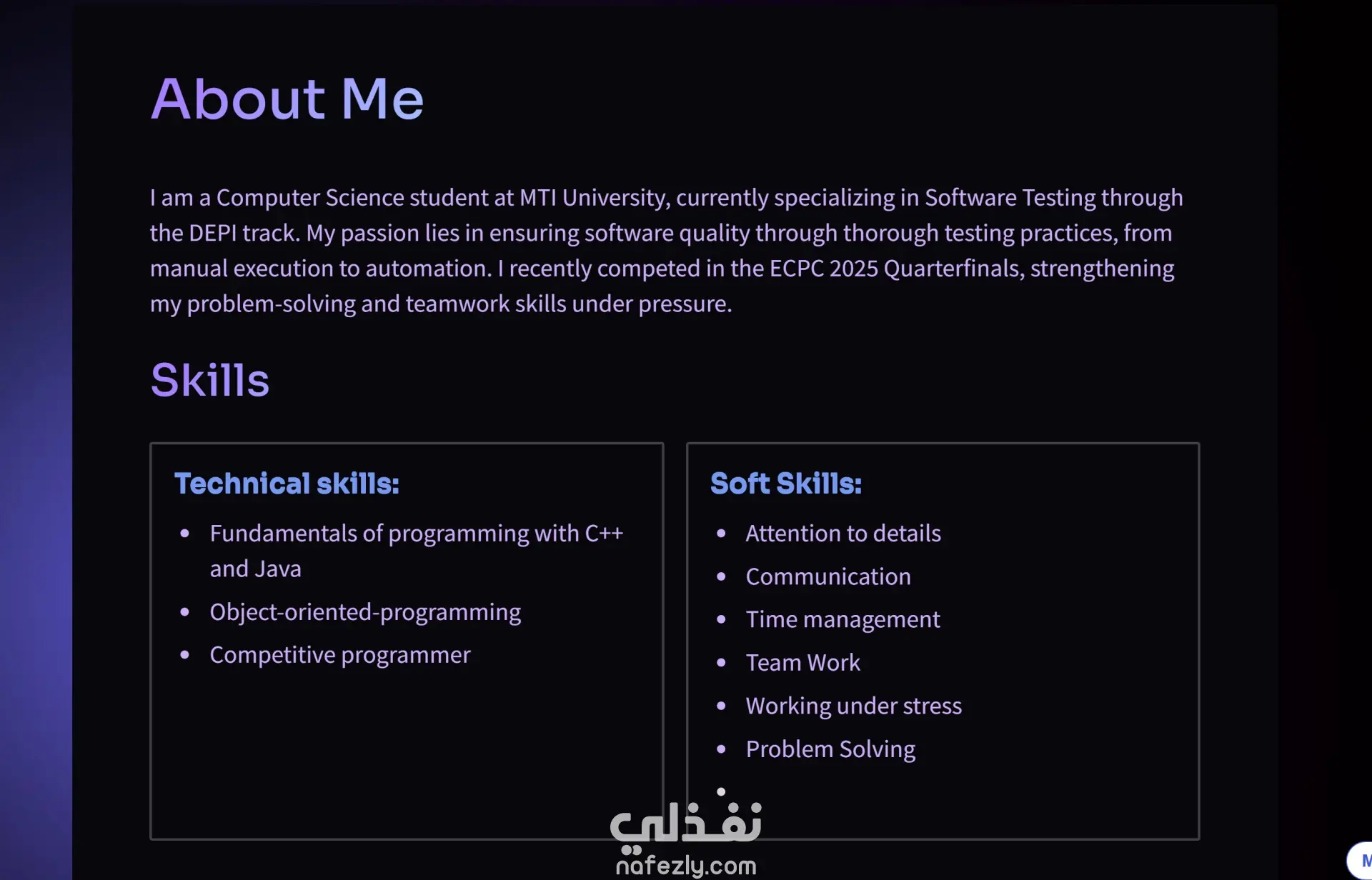 بورتفوليو (personal portfolio website) احترافي يوضح نماذج أعمال سابقة متنوعة تعكس الخبرة والجودة في إنجاز المشاريع باللغة الانجليزيه عناصر البورتفوليو: - الصفحة الرئيسية (Home) - من أنا (About Me) - المهارات (Skills) - الأعمال - الخبرات و التعليم - التواصل (Contact) عدد الصفحات 8 تصميم نسخه website احترافيه باللغه الانجليزيه