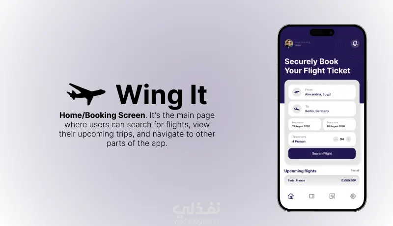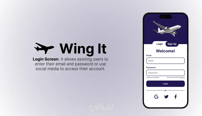 هذا المشروع عبارة عن تصميم تطبيق حديث لحجز تذاكر الطيران يسمى "Wing It". يهدف التصميم إلى توفير تجربة استخدام سلسة، سهلة، وممتعة للمستخدمين، بدءًا من لحظة فتح التطبيق وحتى إتمام عملية الحجز.