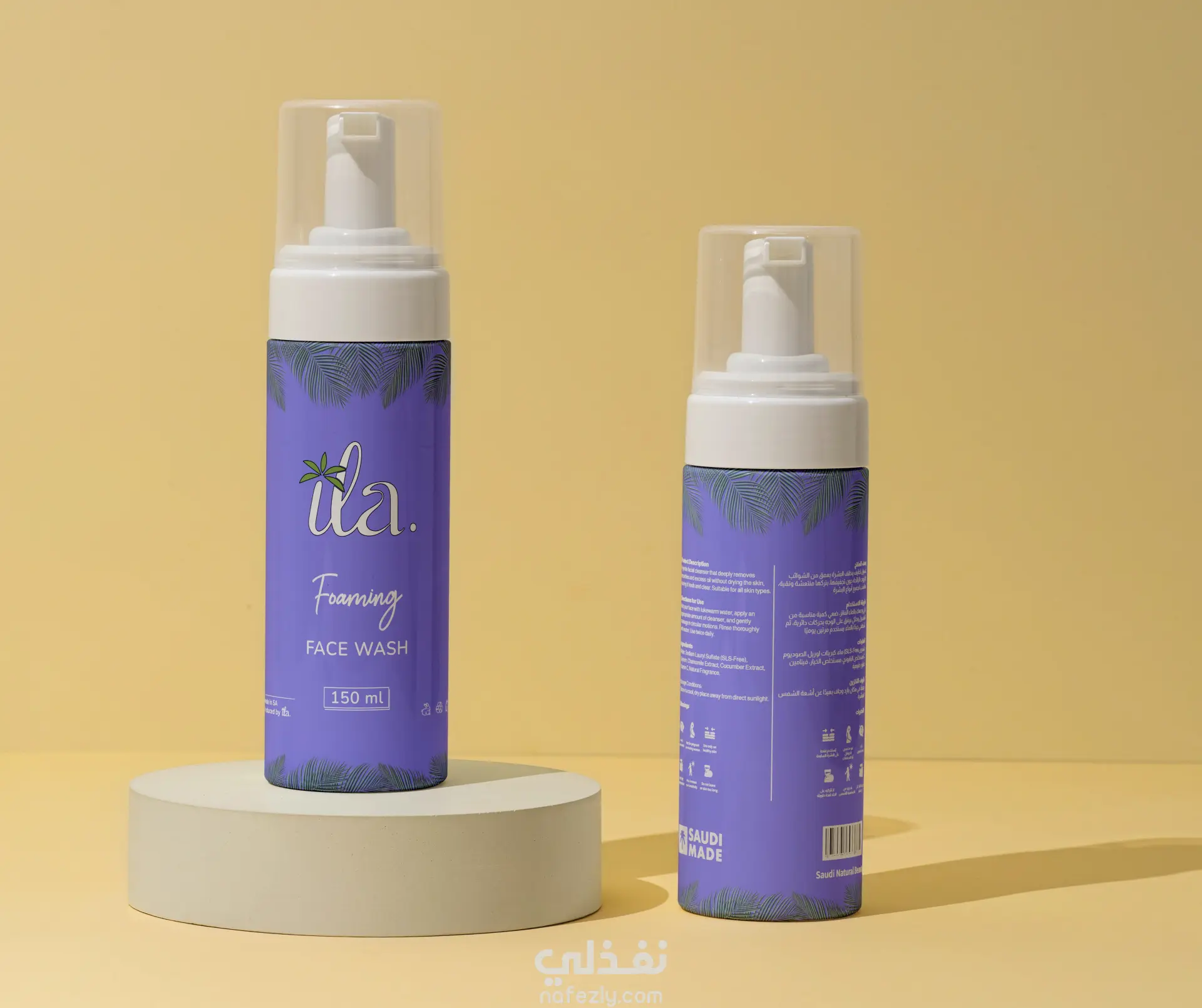 تصميم عبوات لمنتجات عناية بالبشرة عن طريق تطبيق الهوية البصرية في التصميمات مع تطبيق التصميمات على قوالب عرض واقعية(Mockups)