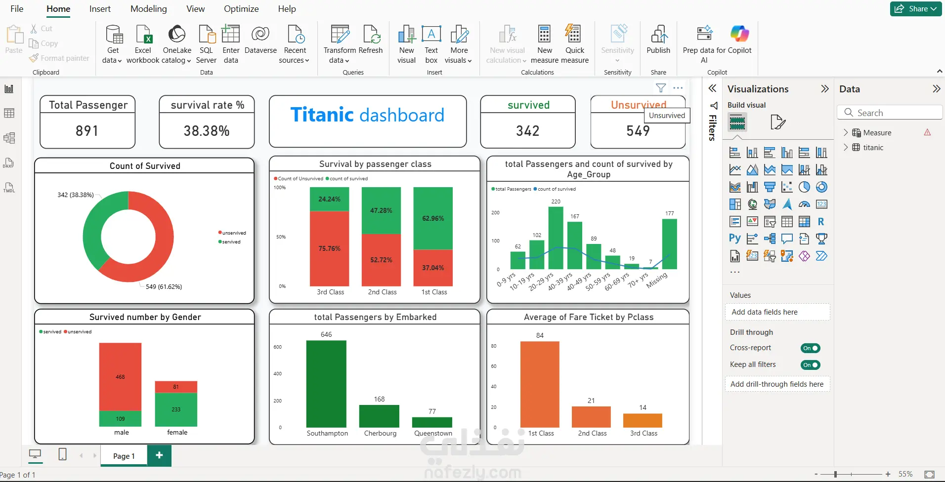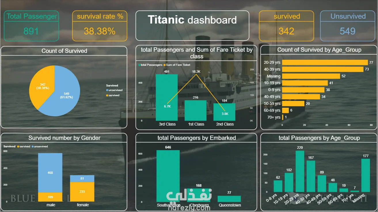 تصميم داش بورد تفاعلية و تحليل بيانات تيتانك