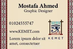 قمت في هذا المشروع بتصميم بطاقة أعمال مزدوجة الوجه لعلامة "KEMET"، والتي تختص في نشر الوعي بالتراث المصري و الاعمال اليدويه كان الهدف هو ابتكار تصميم يعكس روح الهوية البصرية للعلامة، ويجمع بين الأصالة المصرية القديمة واللمسة العصرية، ليترك انطباعًا فريدًا لدى العمي