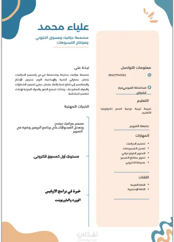 مسوق الكترونيومصممة جرافيكوتعديل الفيديوهات