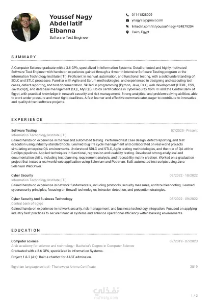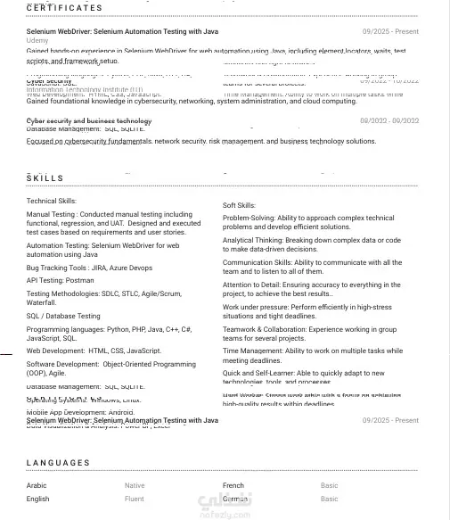 أهتم بتنسيق السيرة الذاتية بشكل أنيق، مع استخدام كلمات احترافية وتنسيق يناسب مجالك (مهندس، مبرمج، محاسب، طبيب، إلخ).