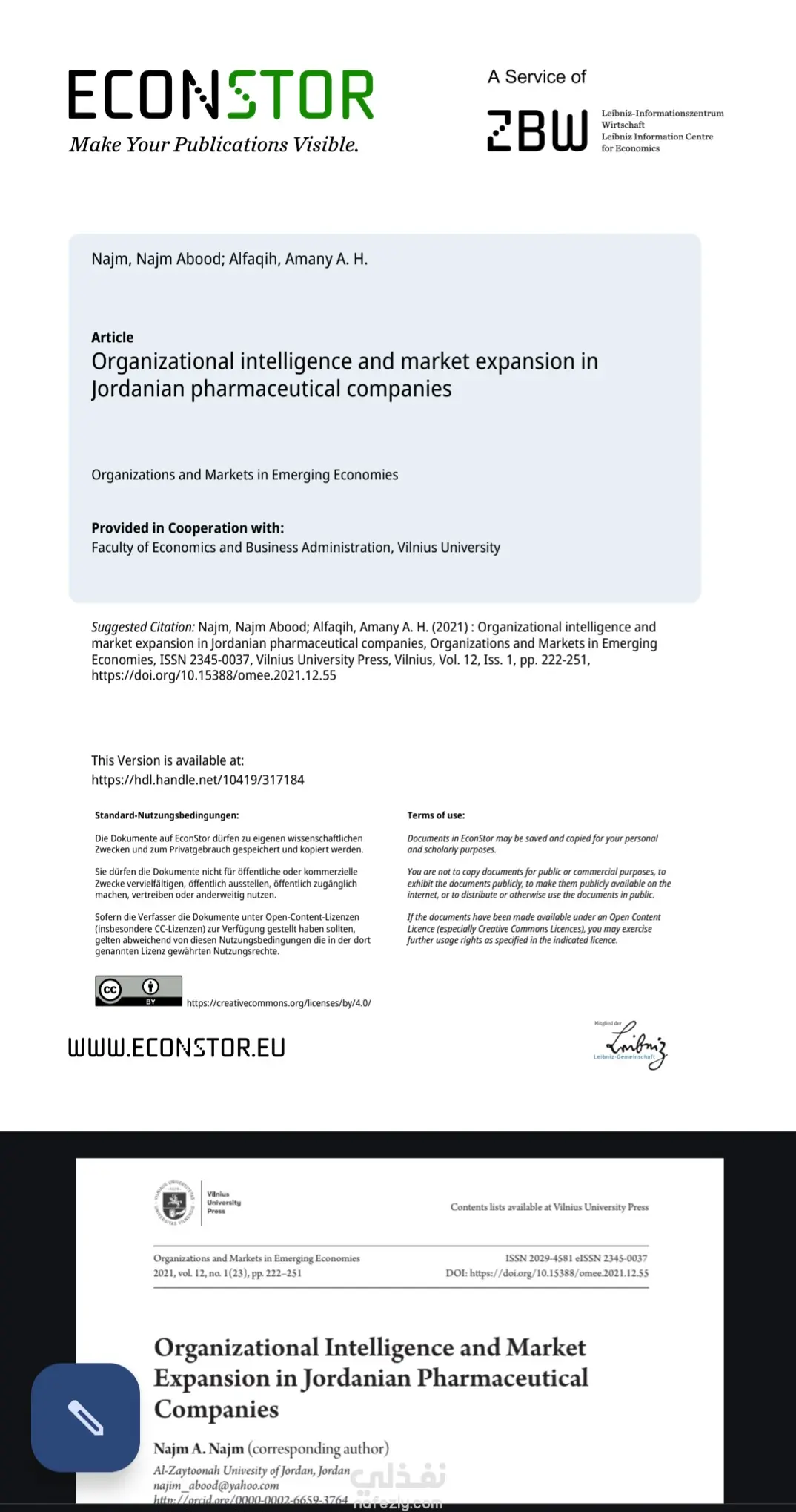 رسالة ماجستير بتخصص إدارة الأعمال MBA، بعنوان The impact of organizational intelligence on market expansion . نشر بحث علمي بعنوان Organizational Intelligence and Market Expansion in Jordanian Pharmaceutical Companies