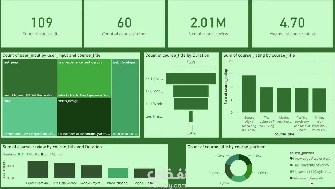 يممكنني إنشاء داس بورد علي برنامج الباور بي اي من الصفر لمساعدتط في اتخاذ قراراتك و توضيح البيانات، أقوم بتنظيف البيانات ثم تعديلها لتكون جاهزة للعرض ثم أخيرا أقوم ب عمل داش بورد احترافية.