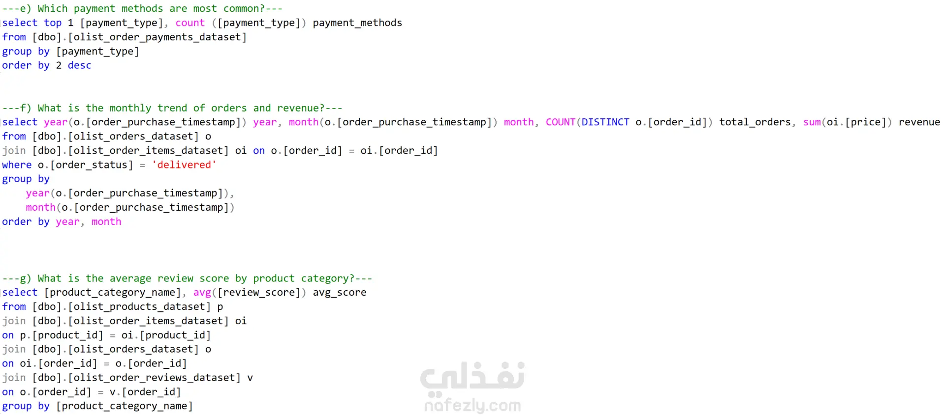 تحليل شامل لمنصة E-Commerce برازيلية باستخدام SQL
