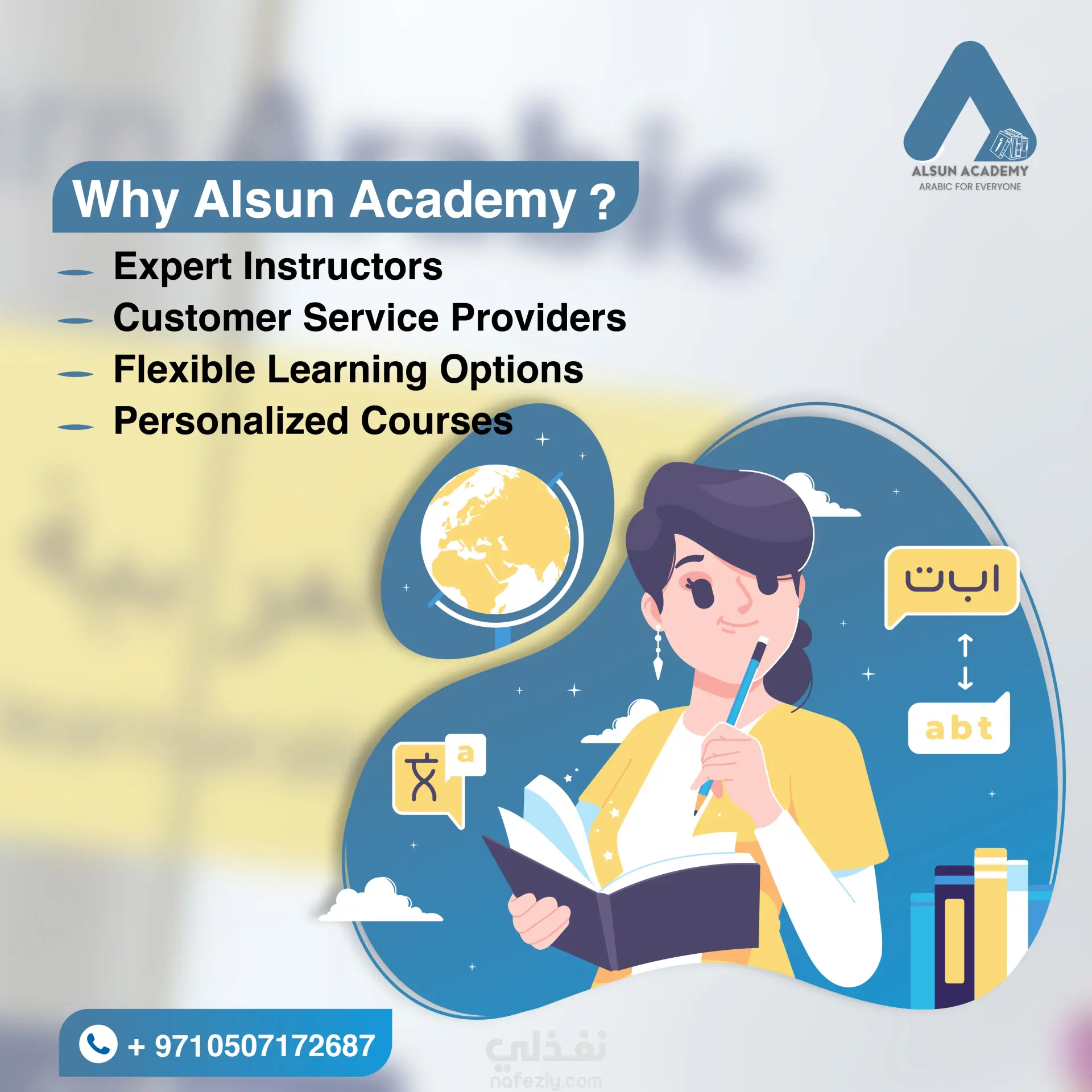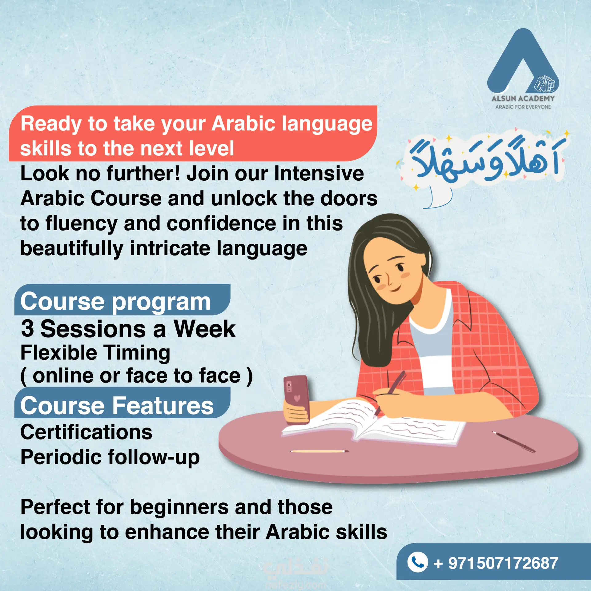 تصميم منشورات وحملات بصرية خاصة بدروس اللغة العربية.
