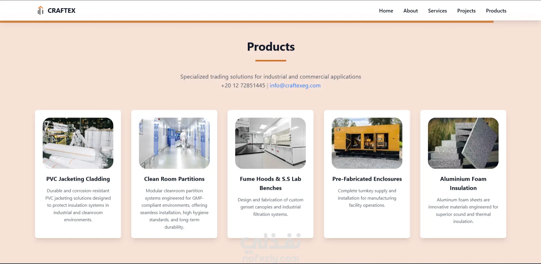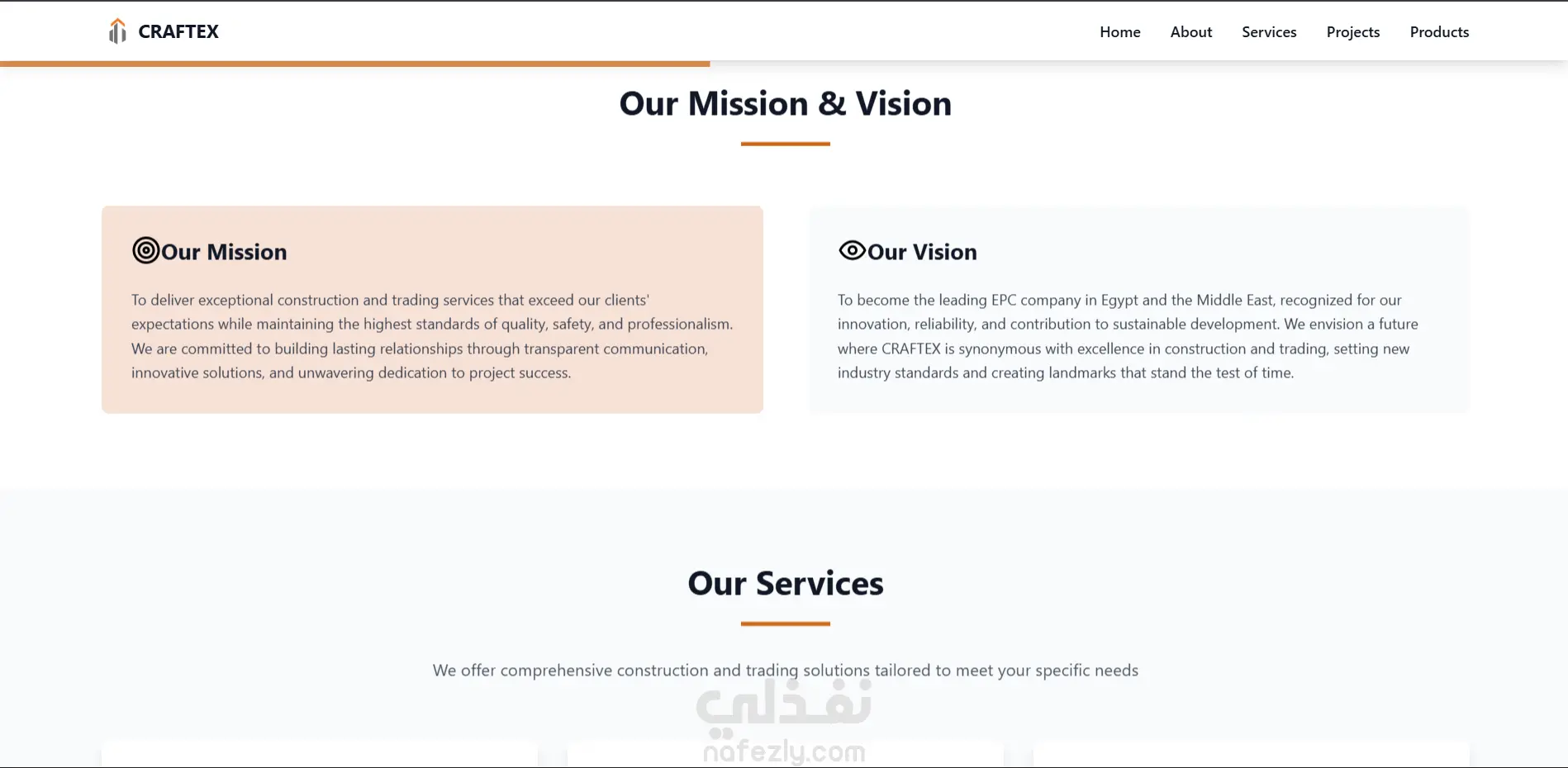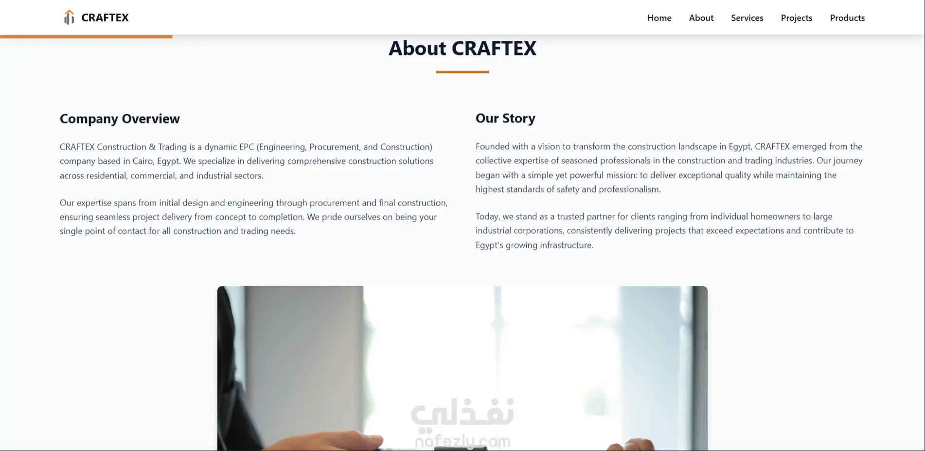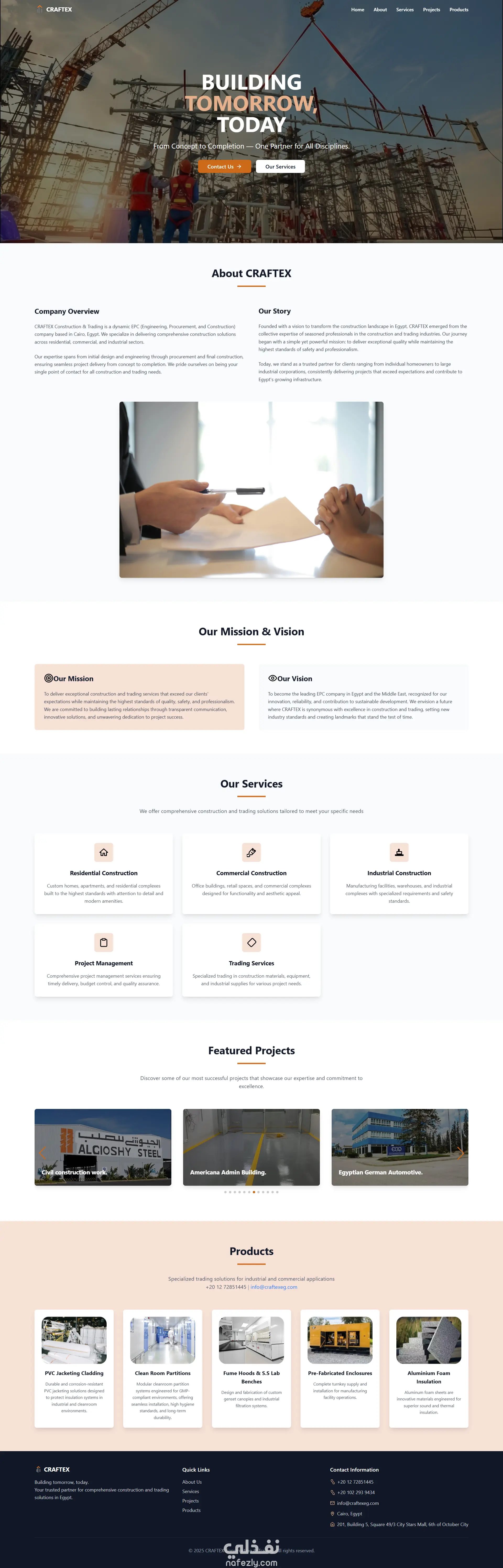 قمت بتصميم وتطوير موقع إلكتروني متكامل لشركة Craftex لعرض خدماتها ومنتجاتها بشكل احترافي وحديث.
