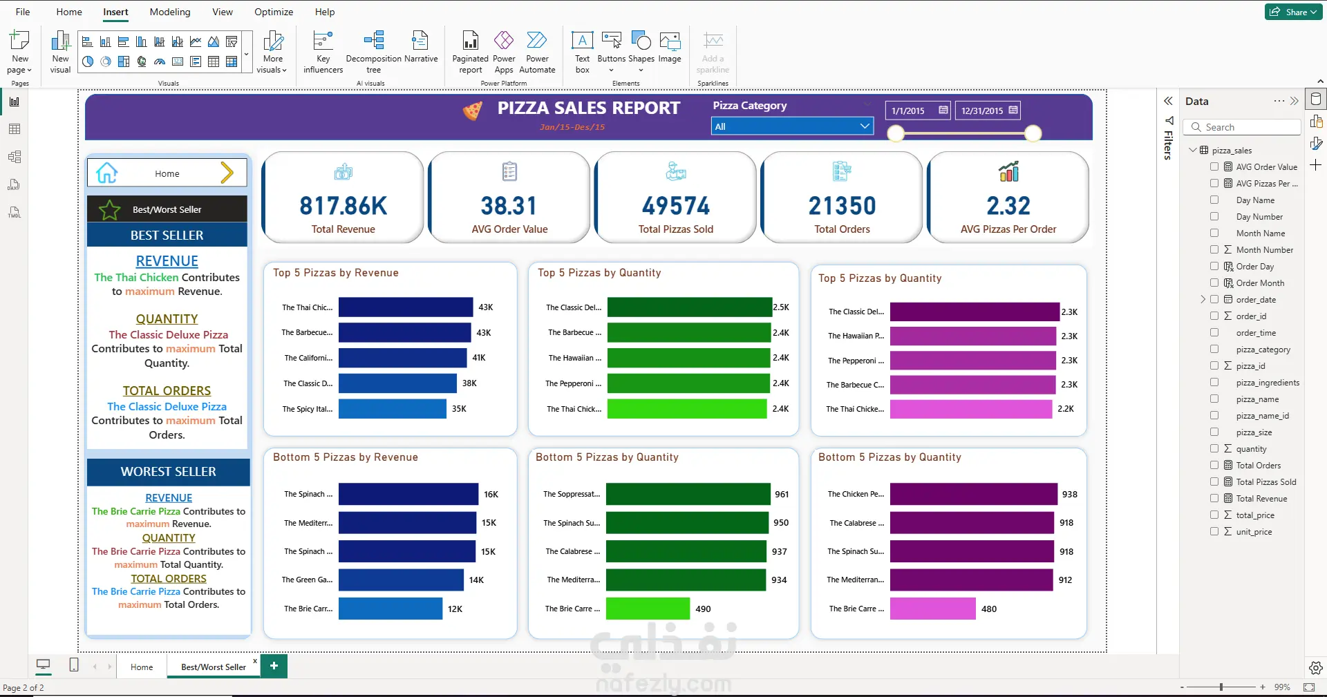 تصميم لوحة تحليلية تفاعلية باستخدام Power BI لفترة (يناير – ديسمبر) لعرض أداء مبيعات البيتزا.
