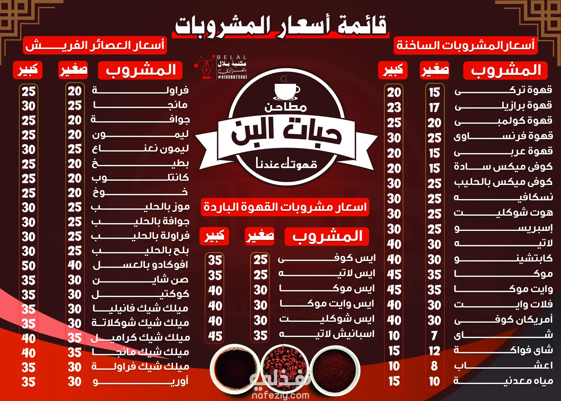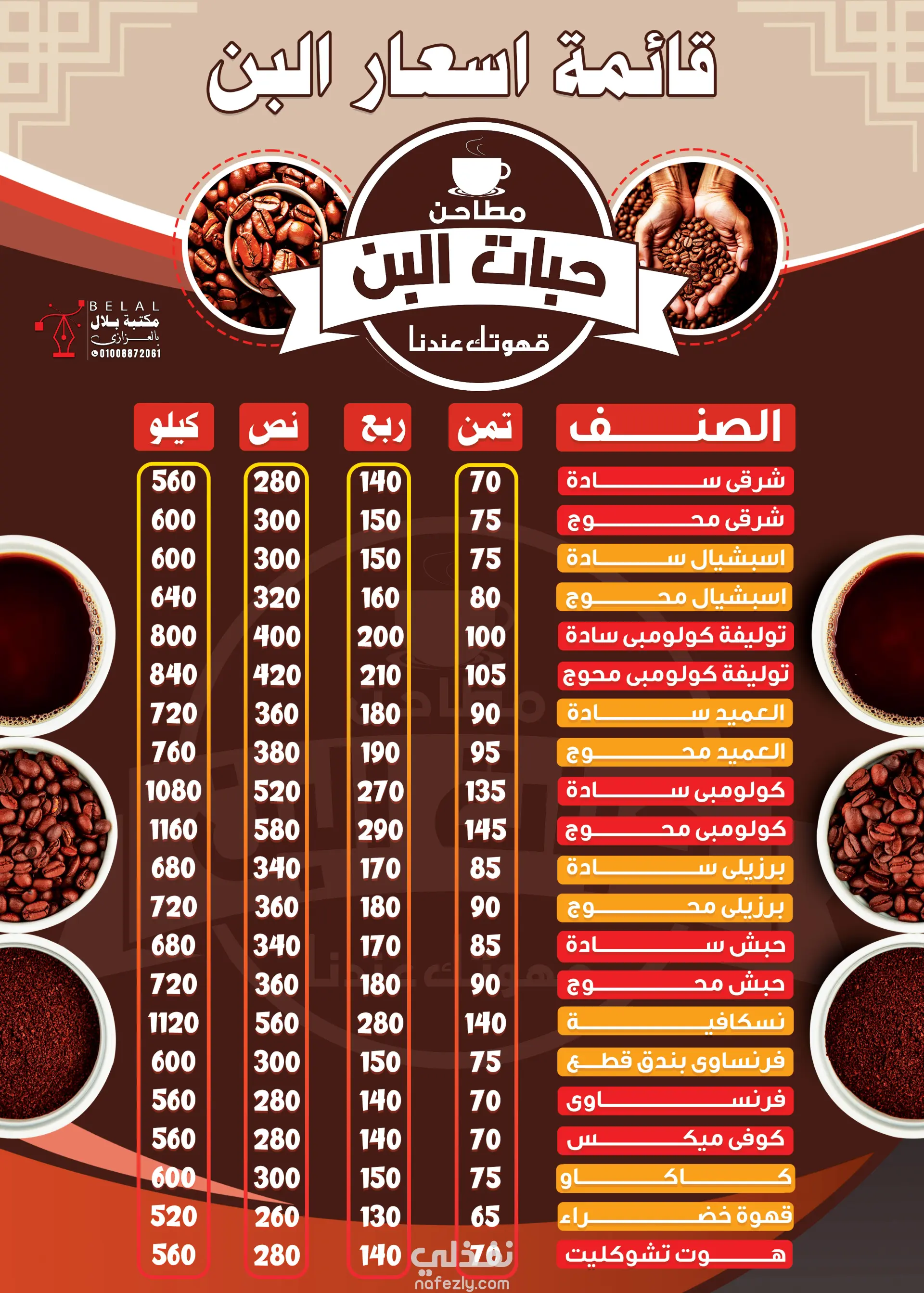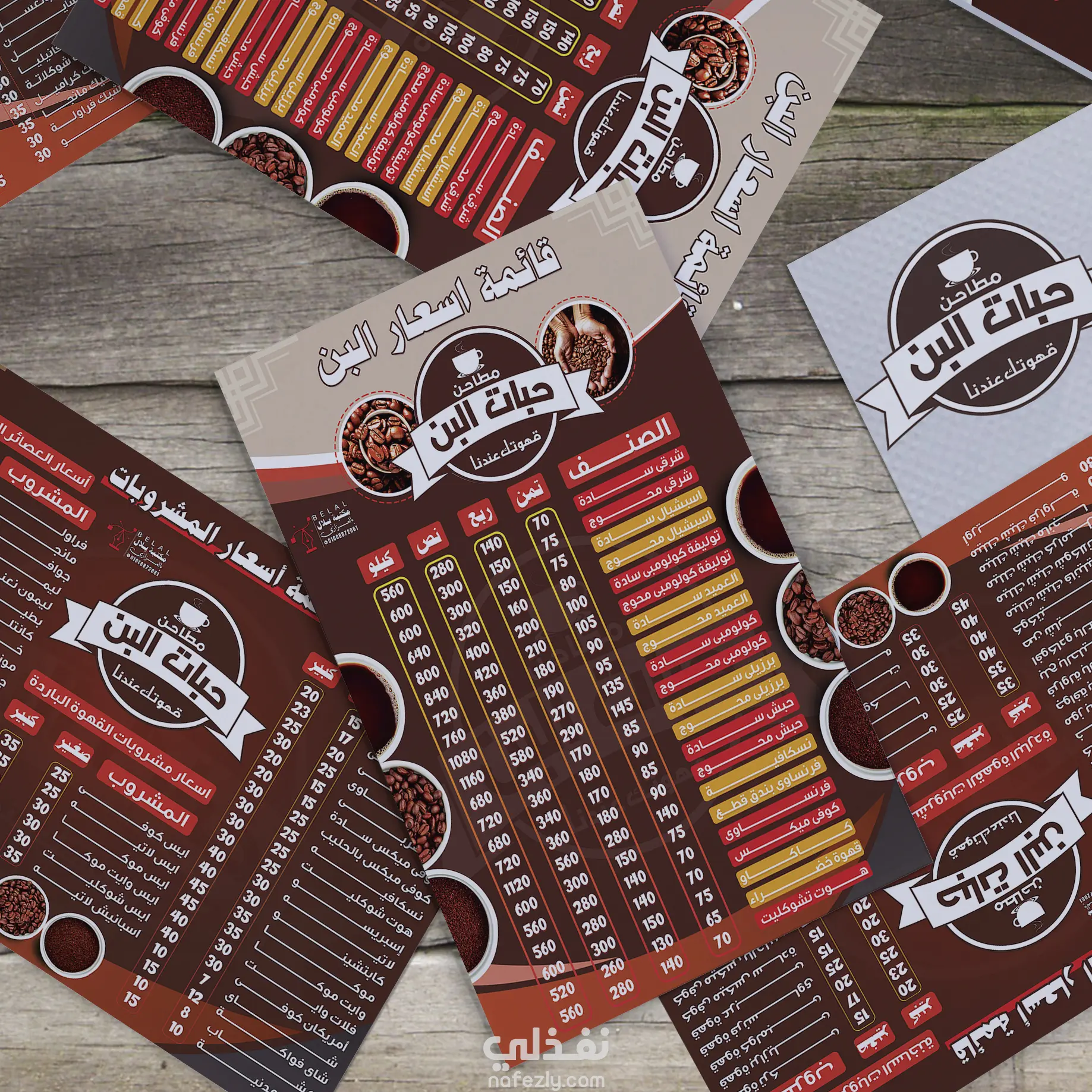 تصميم منيو احترافي لمقهى "مطاحن حبات البن" يجمع بين البساطة والأناقة، بألوان دافئة مستوحاة من القهوة.