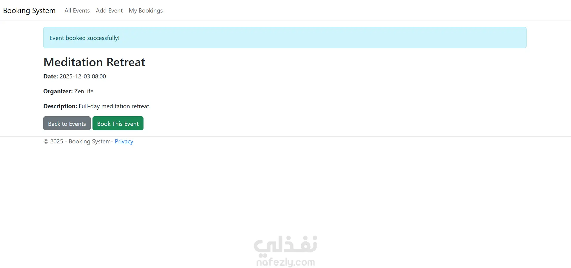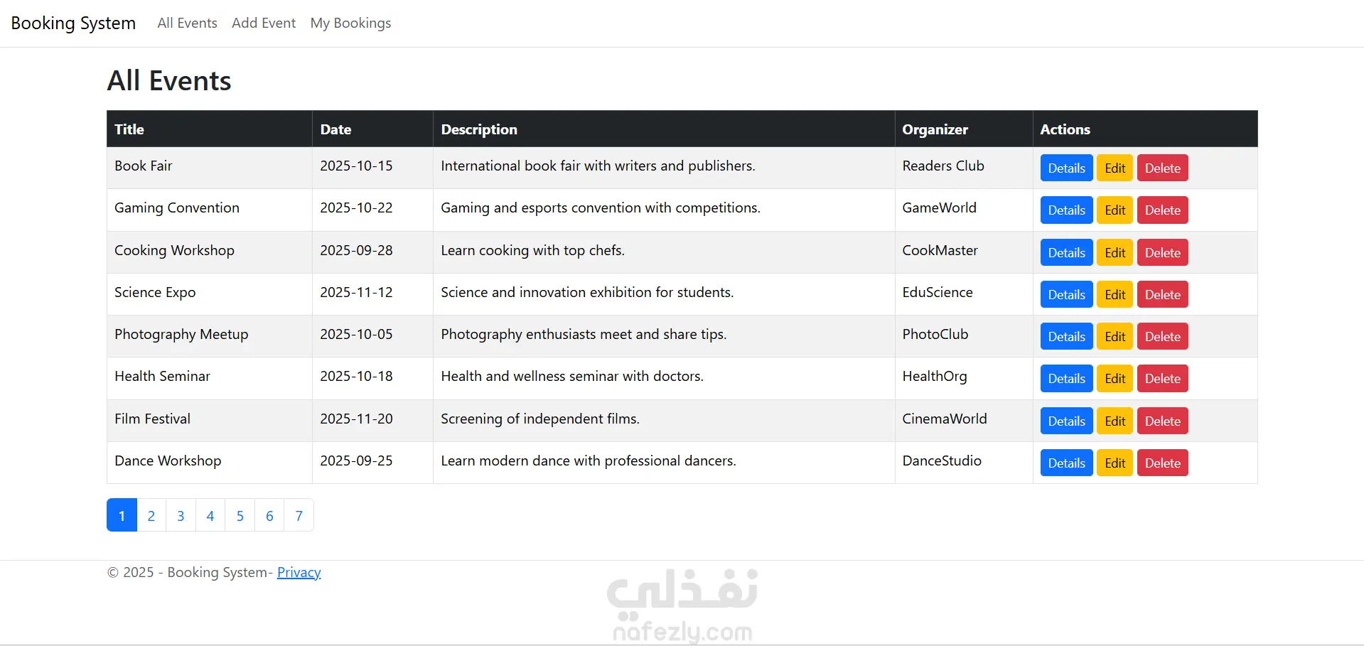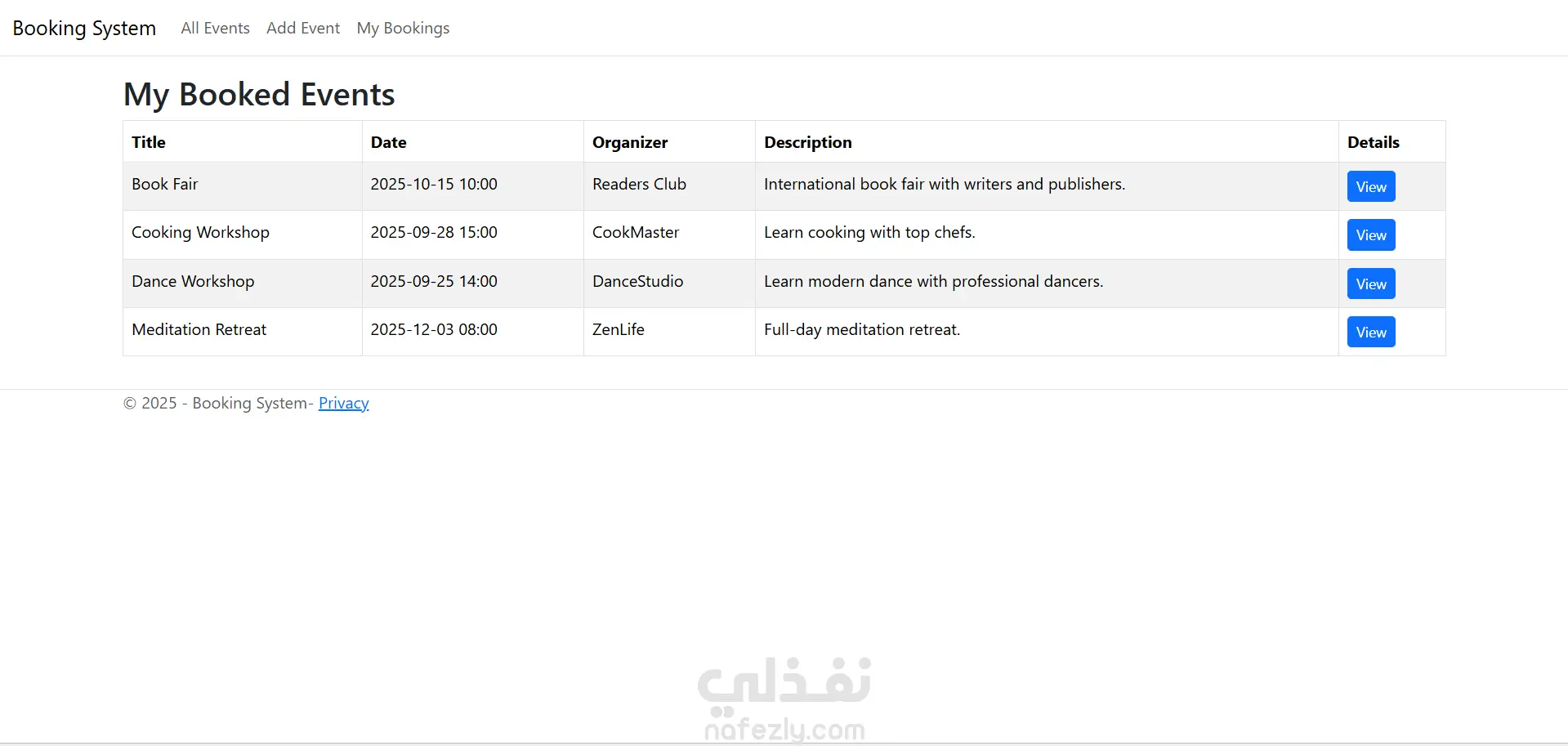 نظام ويب لحجز الفعاليات باستخدام ASP.NET MVC