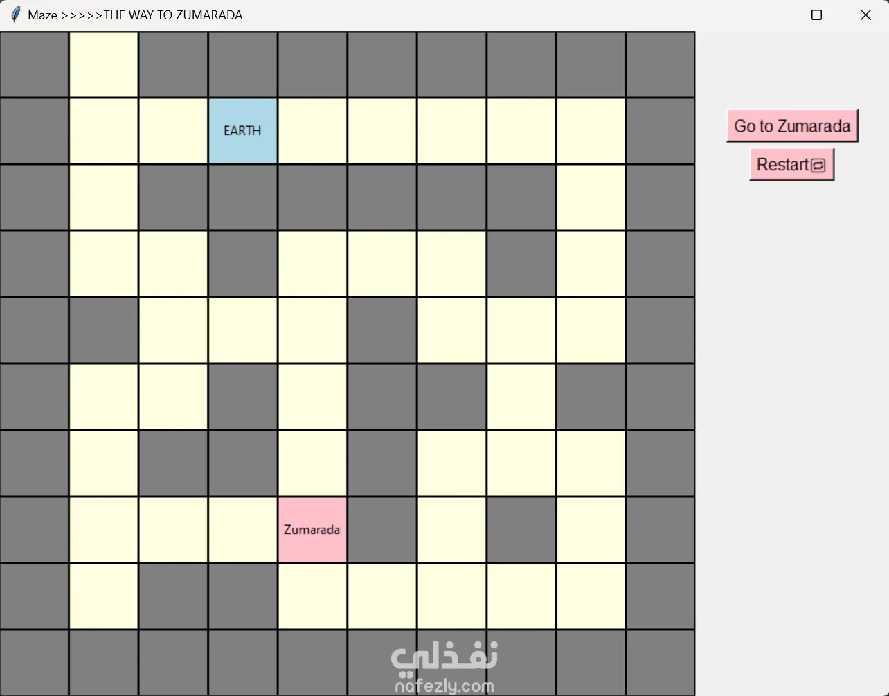 تنظيم المتاهة (تحديد البداية، الهدف، والعوائق) بشكل مناسب لعرض الخوارزمية واختبارها.