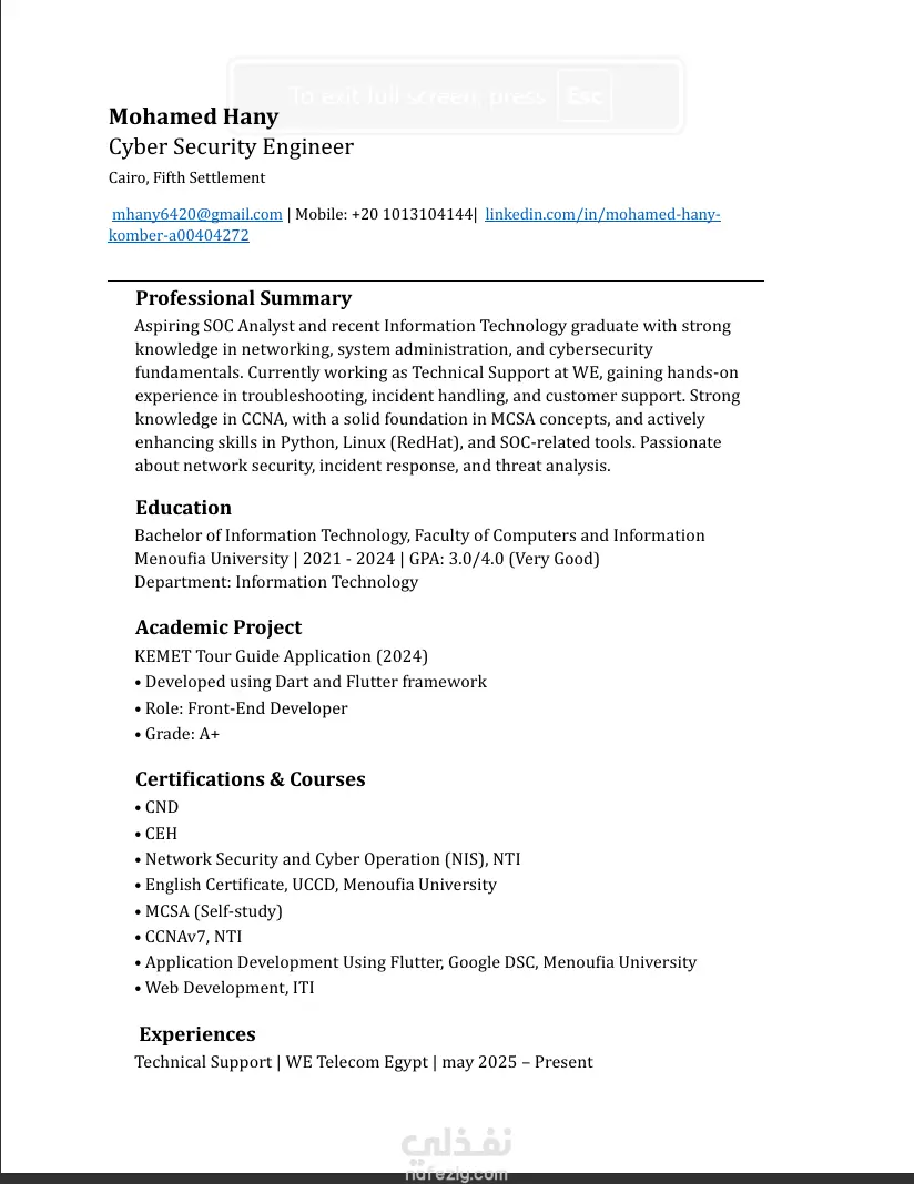 كتابه سيره ذاتيه بشكل احترافي علي نظام ال ATS حديث