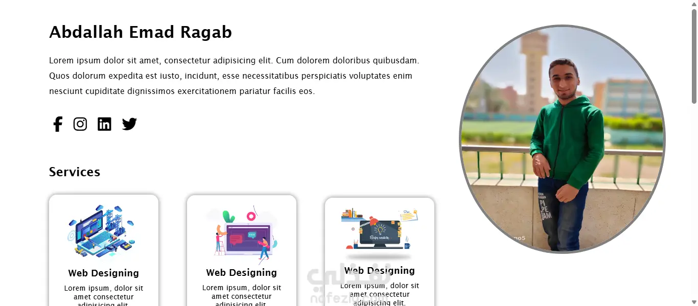 موقع CV بسيط مصمم ب html و css فقط، متجاوب مع جميع الأجهزة