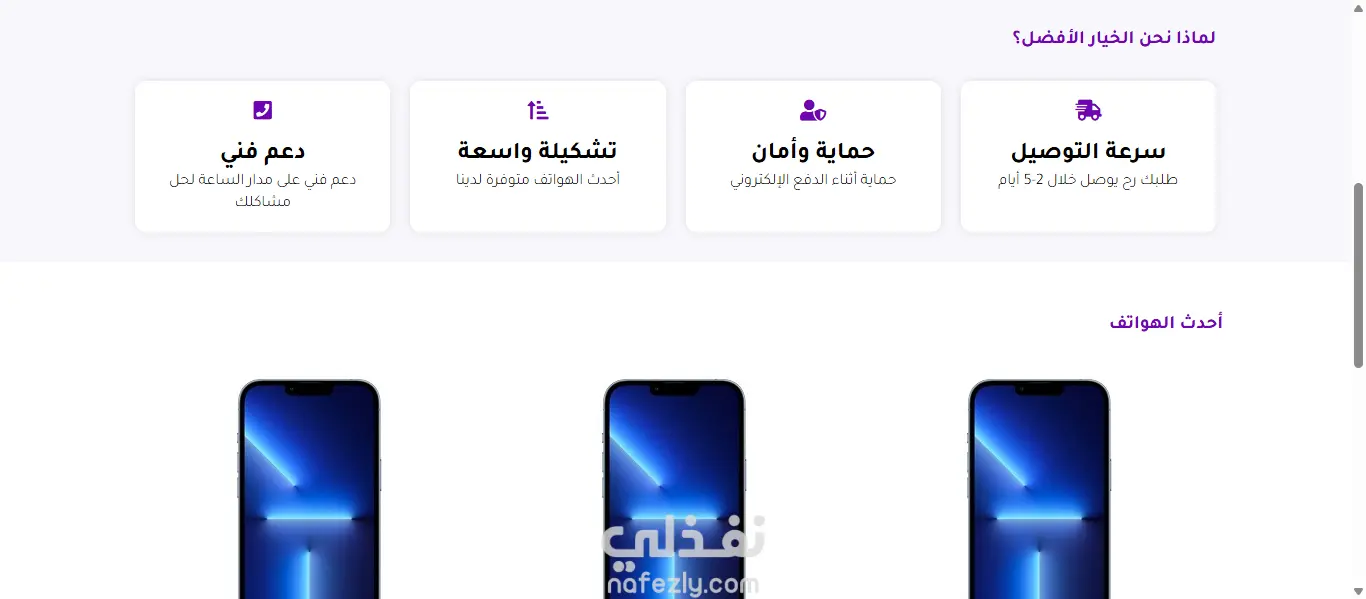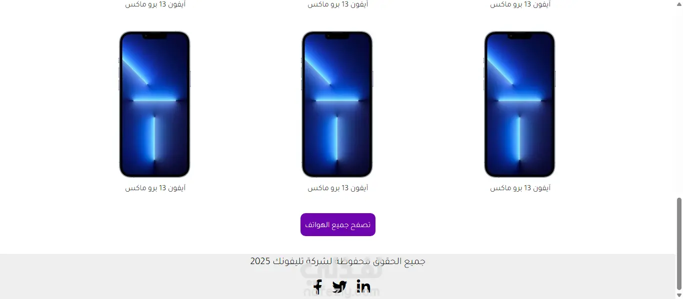 موقع إلكتروني بسيط واحترافي يعرض منتجات الهواتف بشكل منظم وجذاب ومتجاوب مع جميع الأجهزة، مناسب لمحلات أو شركات بيع الهواتف.