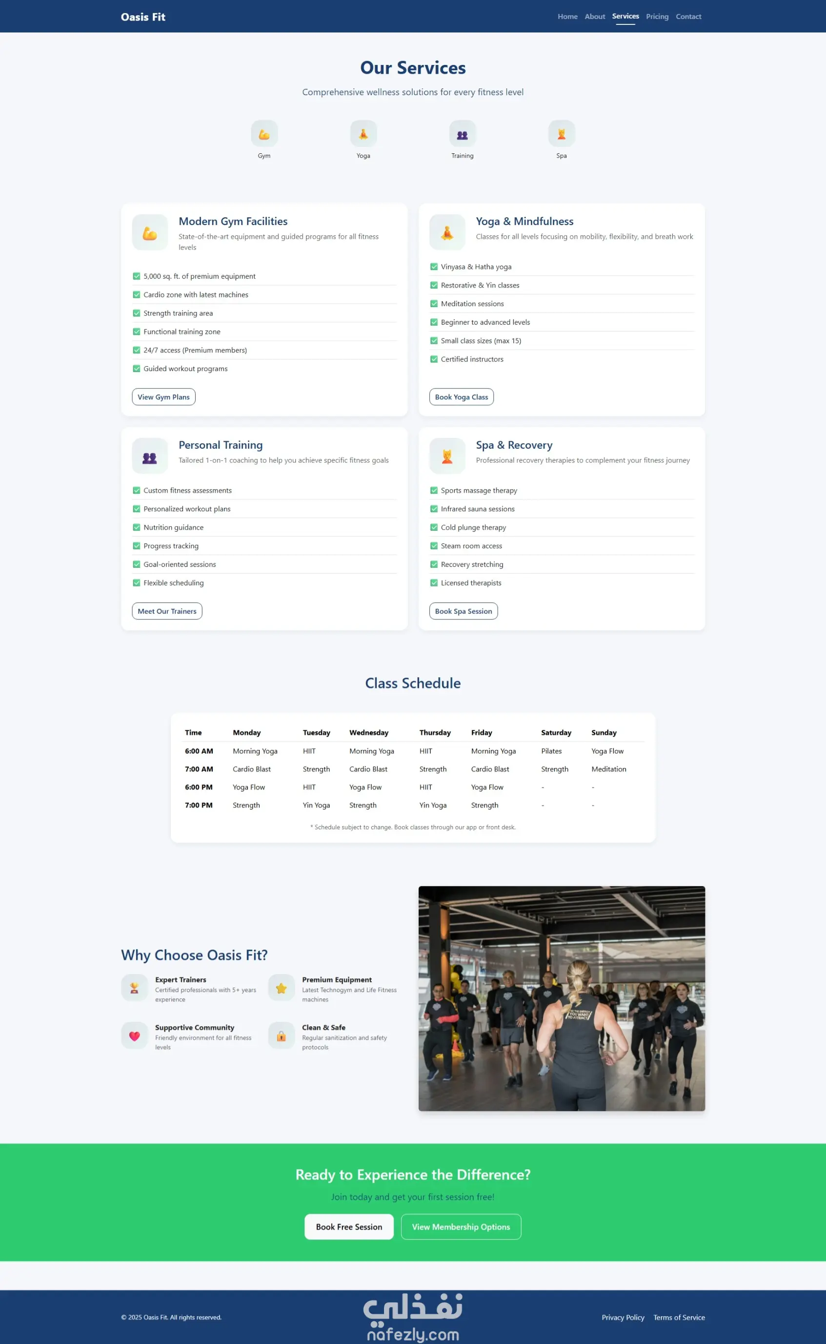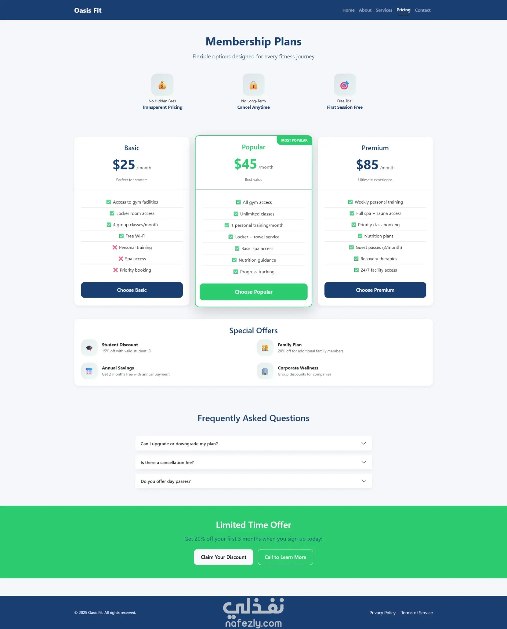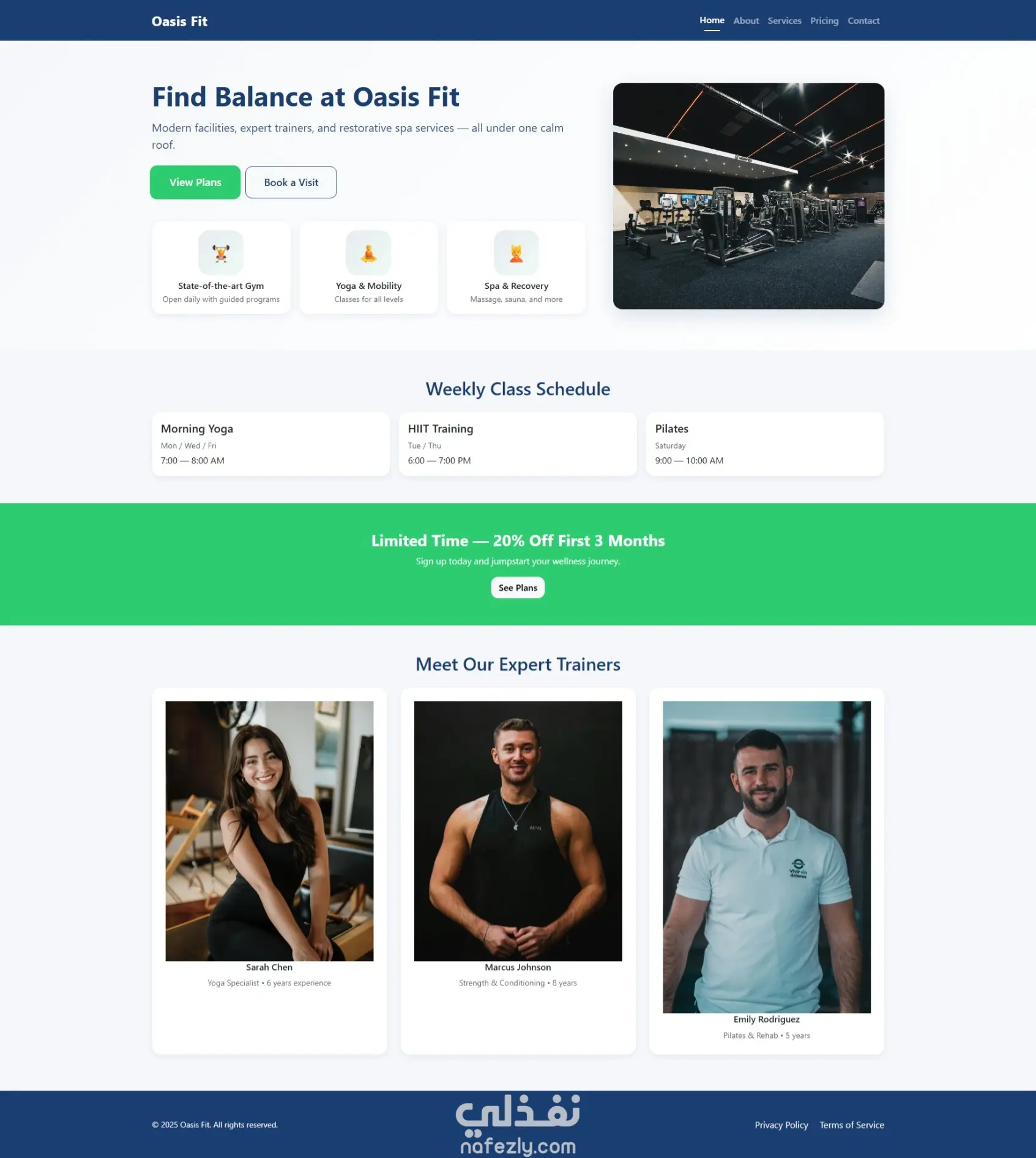 اسم المشروع: Oasis Fit - تصميم واجهة موقع (Front-End Prototype) للياقة والصحة