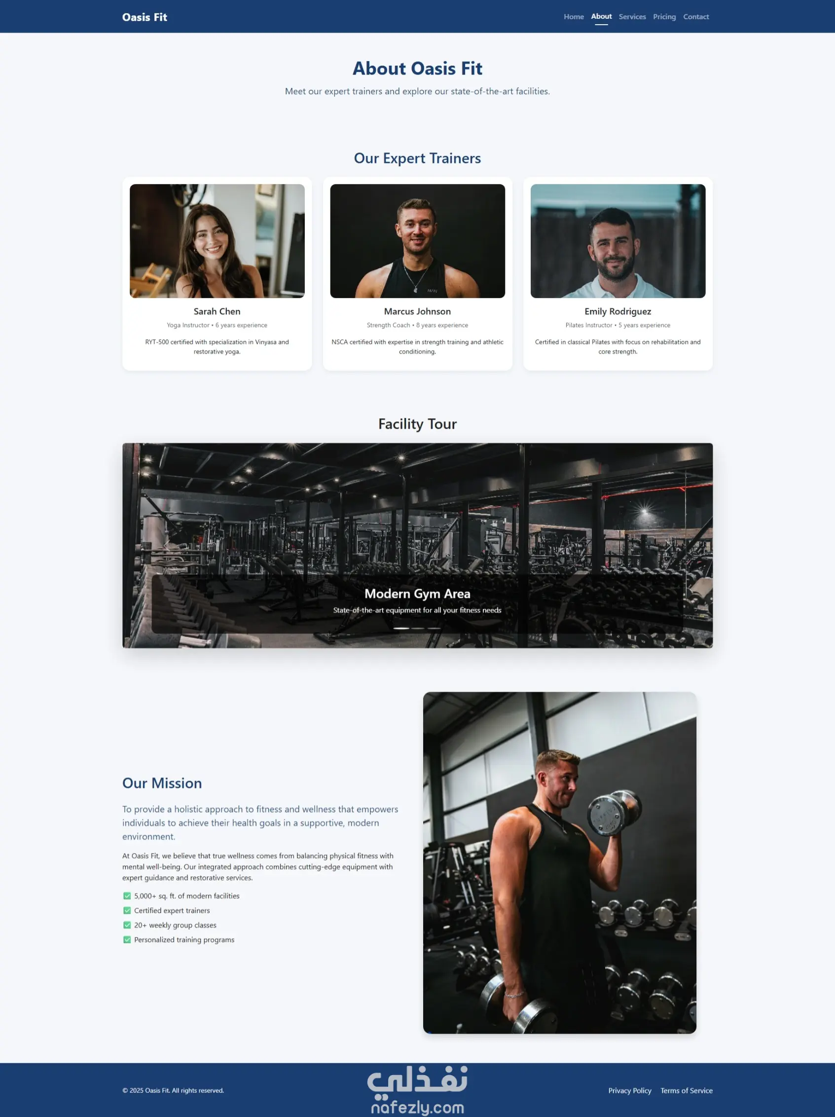 هيكلة محتوى واضحة: يتضمن الموقع صفحات رئيسية مخصصة ومنظمة لتغطية الجوانب الأساسية (مثل خطط التدريب، برامج التغذية، وقسم تواصل).