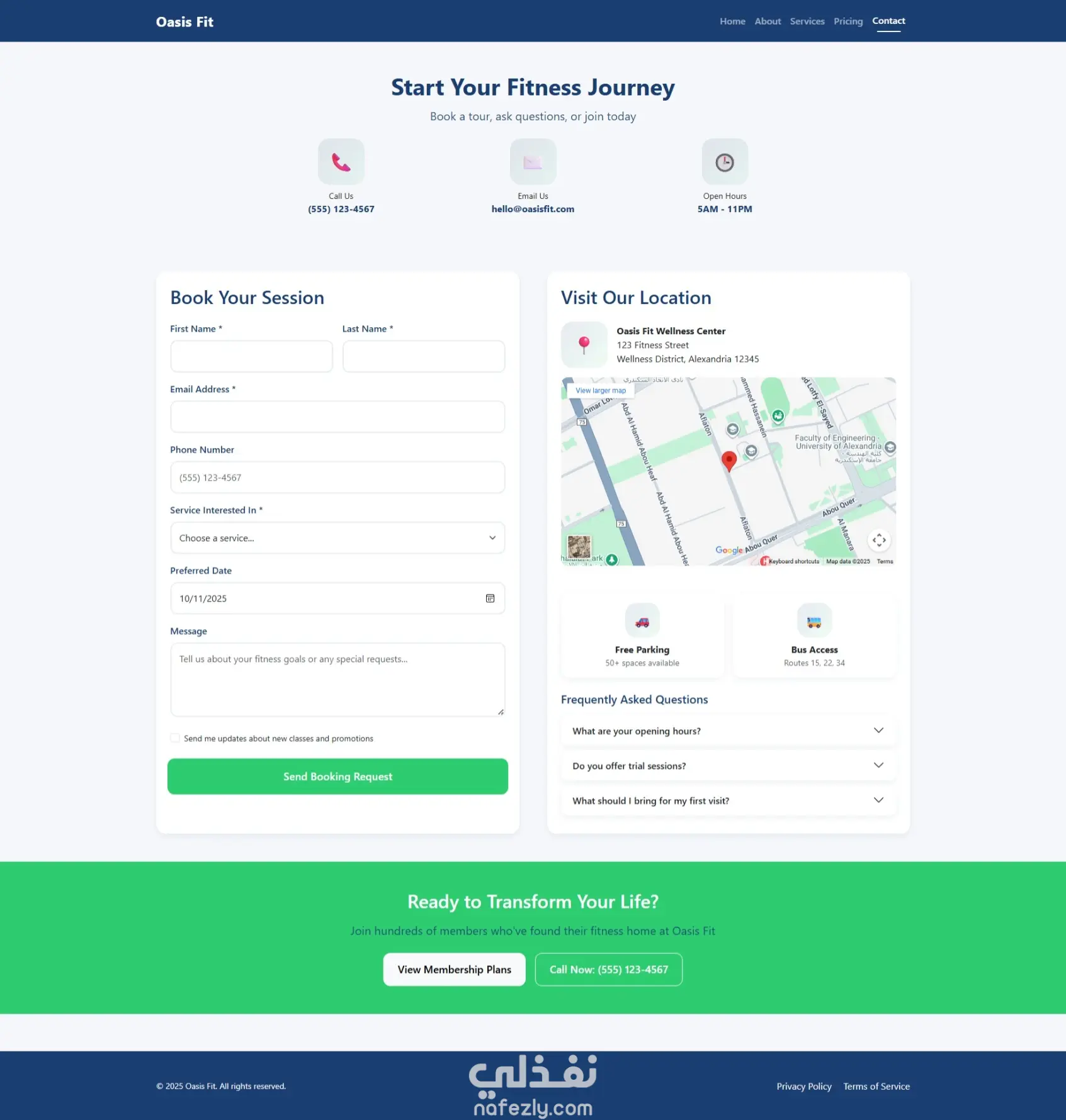 يُعد مشروع Oasis Fit نموذج واجهة (Prototype) متكامل وجاهز للإنتاج، مصمم خصيصاً لخدمة المراكز الرياضية، المدربين الشخصيين، أو العلامات التجارية في مجال الصحة واللياقة. يركز التصميم على توفير تجربة مستخدم (UX) سلسة وواضحة، ويتميز بما يلي: