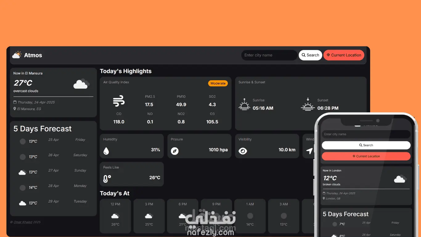 موقع لعرض الطقس متجاوب مع جميع الشاشات